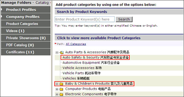 All product categories are now displayed and searchable in both Chinese and English. Selecting the most accurate and specific category is necessary for buyers to find your products on Global Sources Online and to receive Product Alerts.