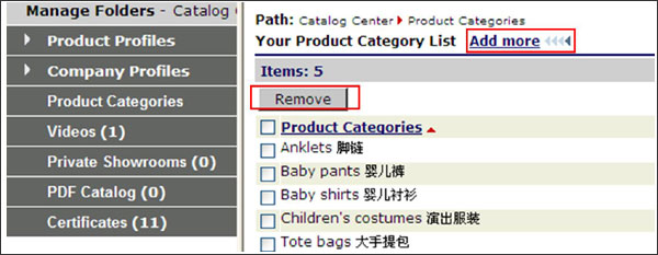We have adjusted the location and design of the functions for adding and removing product categories to make them clearer and easier to use. To add categories, click the easy-to-find "Add more" link located at the top of the Product Category List. The "Remove" button has been placed closer to your selected categories for easier and clearer access. Select the categories you don't need, and click to remove.