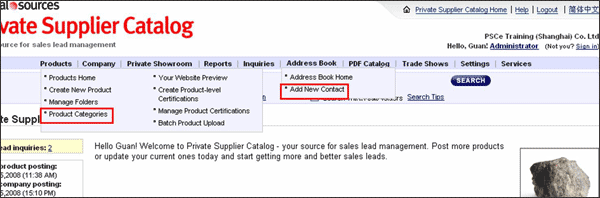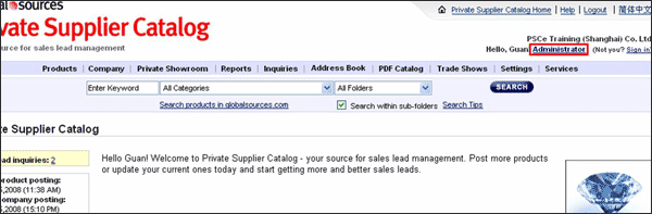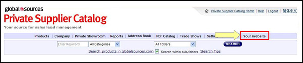 The new Your Website menu allows you to go directly to your Global Sources Marketing Website from any page in the Private Supplier Catalog.