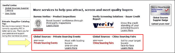 The homepage now features more information on services that can help you expand your business. In addition to third-party verification services, you can learn more about how to meet buyers face-to-face at Global Sources' Private Sourcing Events and China Sourcing Fairs.
