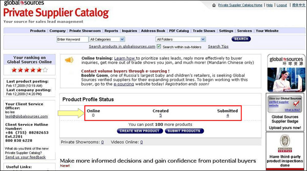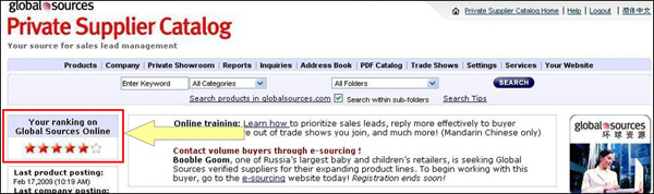 Your company's Global Sources Online ranking is now prominently displayed on the homepage for easy reference.