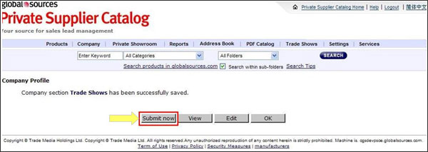 Submit a product to Global Sources Online immediately after saving, without having to return to the Product Profiles folder.