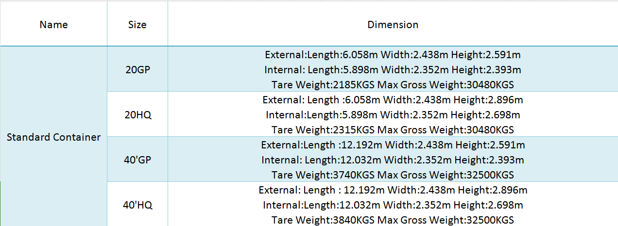 | Container model | 20GP, 40GP, 40HQ,45HQ |