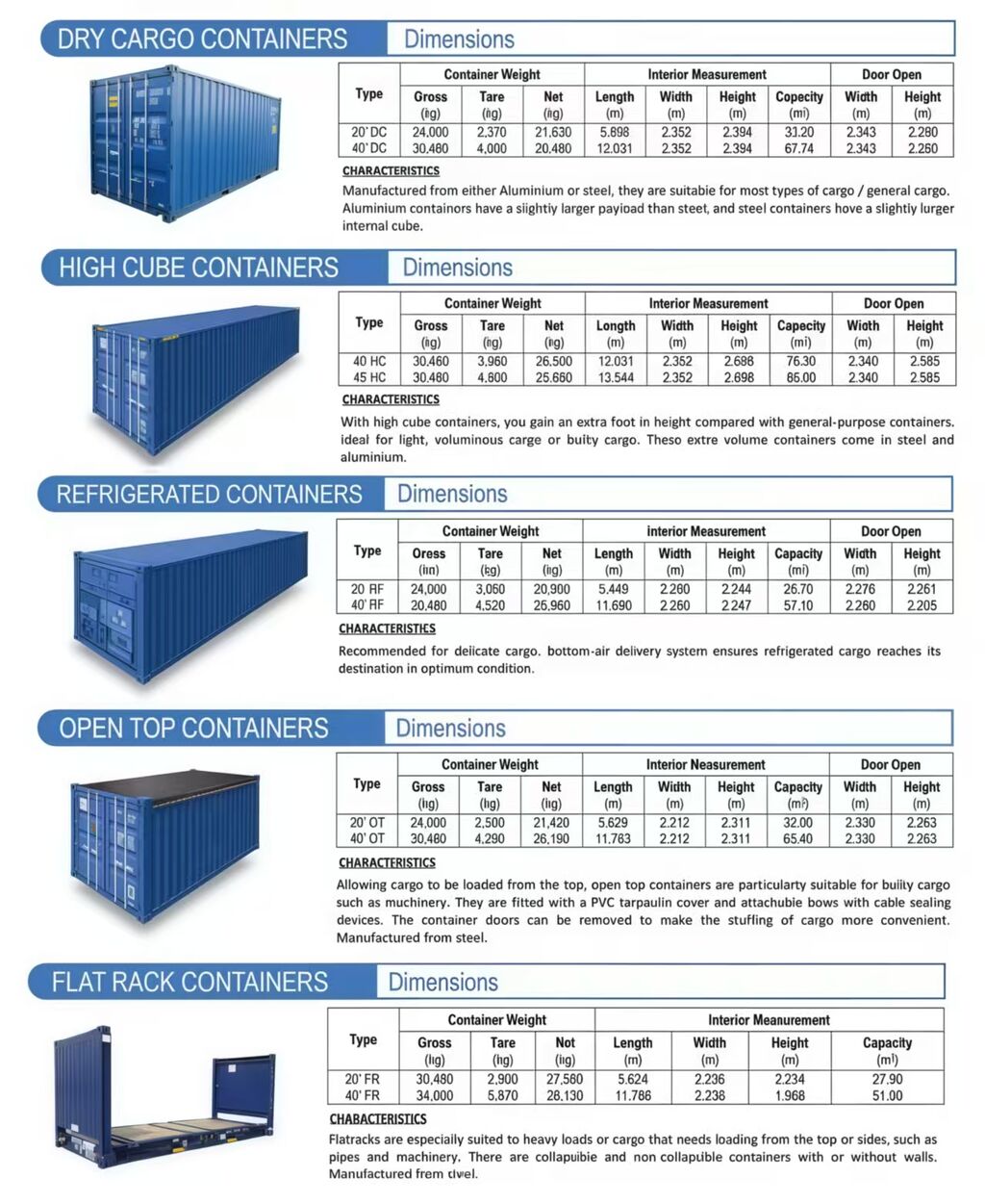 1. 20ft, 40ft, 40hq,40rh,40fr