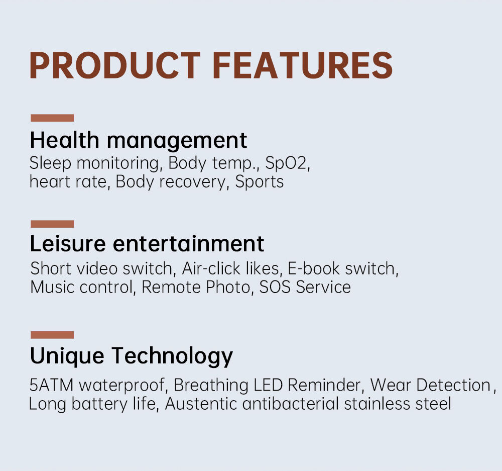 TM05 Smart Health & Fitness Ring is a premium wearable designed for health-conscious consumers, fitness brands, and tech distributors seeking a blend of medical-grade insights and lifestyle convenience. Crafted from austenitic 316L antibacterial stainless steel (4.9g, 8.5mm×2.4mm), this ultra-lightweight ring combines elegance with durability, .