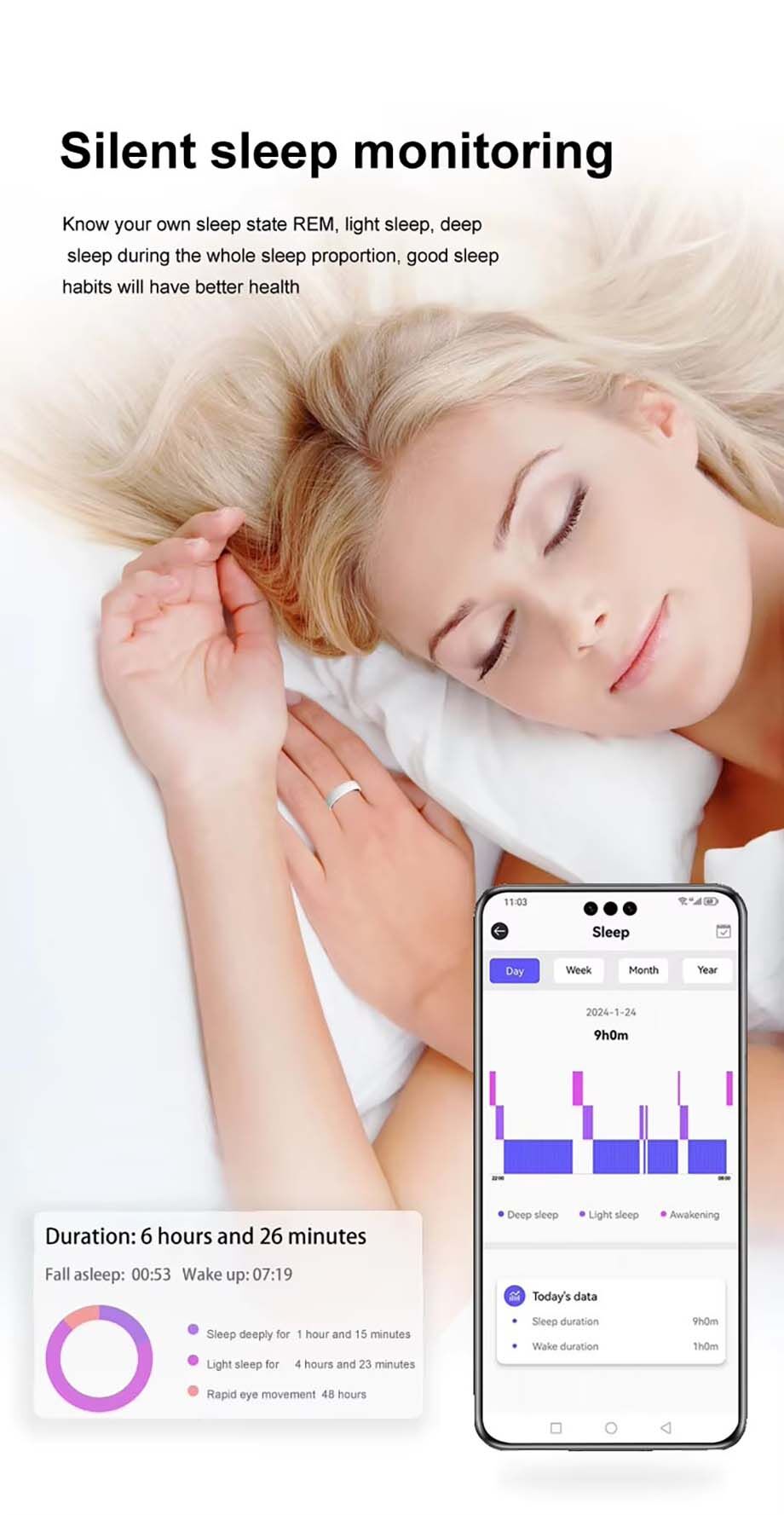 Function:-Night sleep tracking Sleep quality score Sleep heart rate, HRV