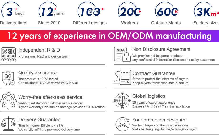 • Independent R&D and design capabilities; • Free customization & design; • CE, RoHS and FCC certifications;