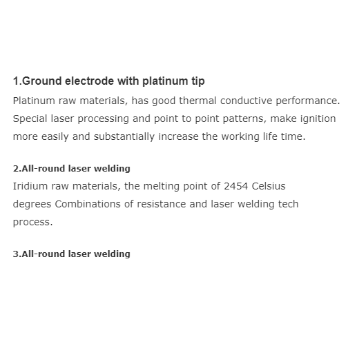 | Gap | Center electrode:Iridium-tipped Electrode Ground electrode:Nickel |