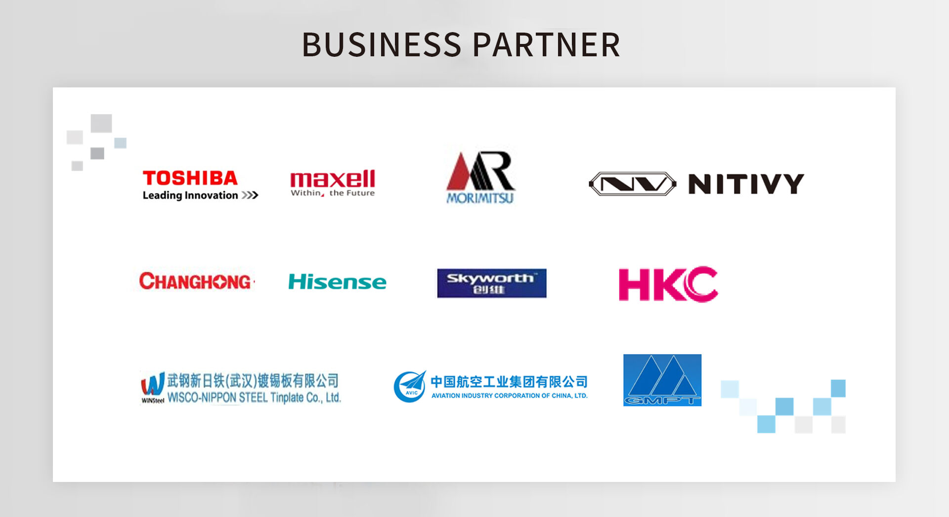 We also serve as a professional sales agent for machinery equipment, test instruments, and tools that are originally produced in Japan and are specifically tailored to meet the requirements of our Chinese customers.