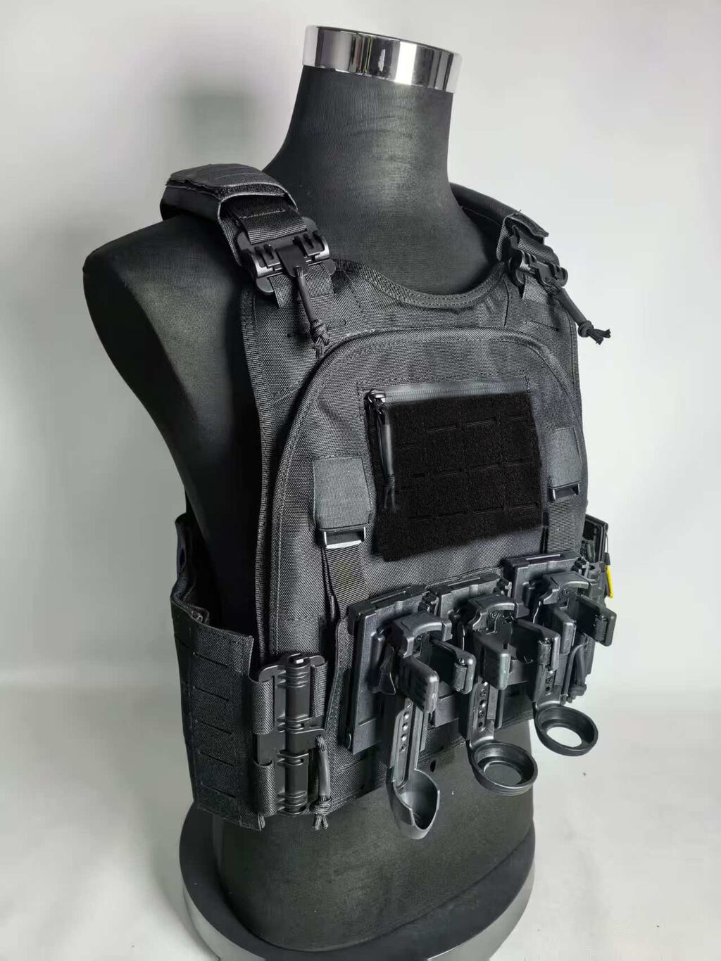 1.激光切割MOLLE结构,轻型拉索快拆作战术背心;