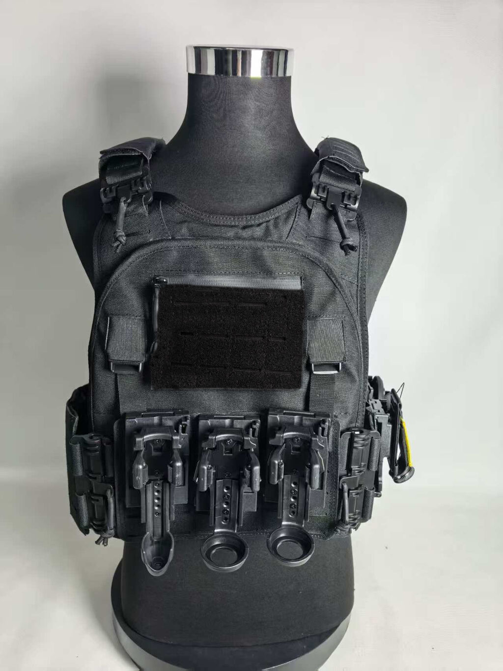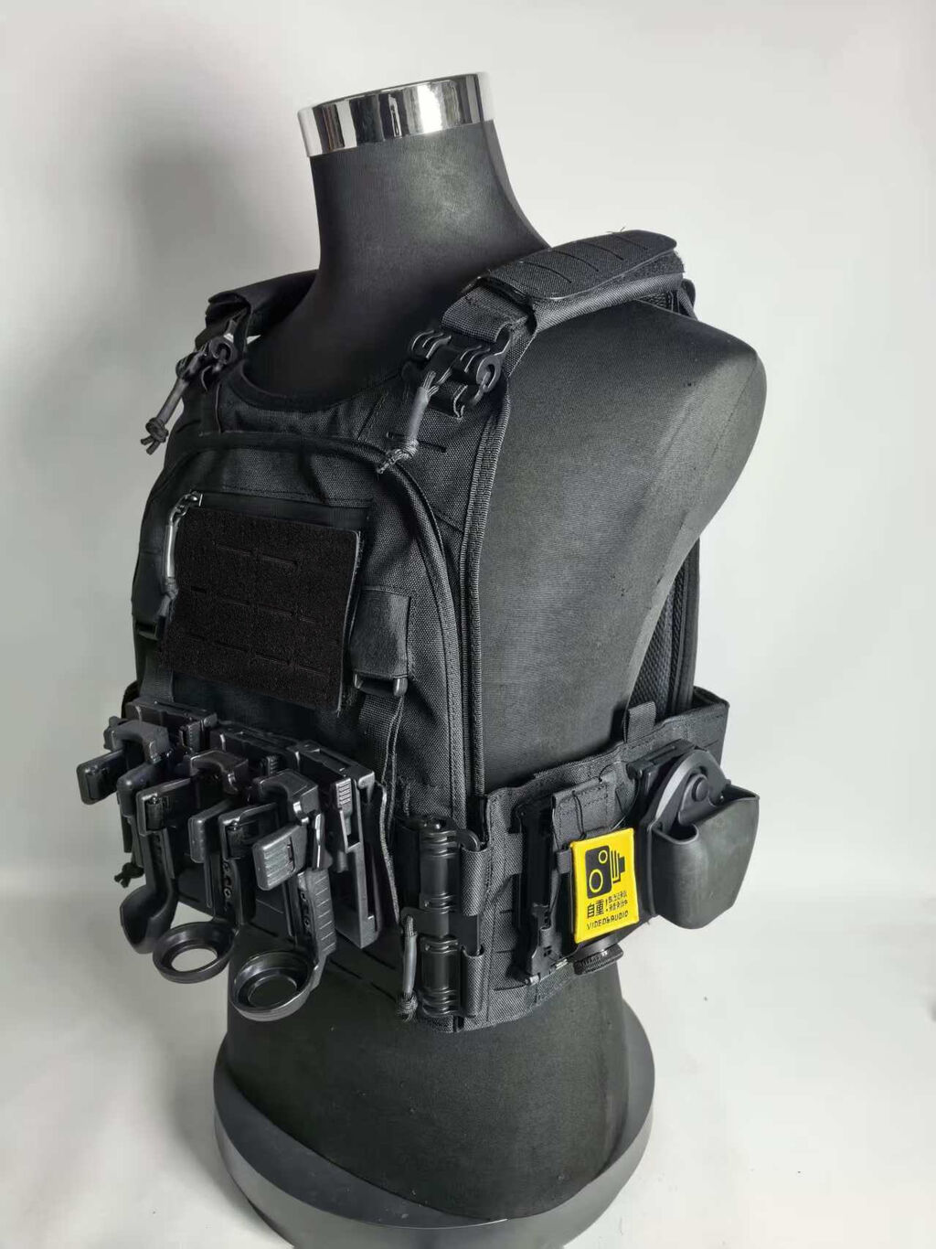 3.正前胸位设有挂载位,可装挂单警手铐,对讲机,催泪,手电,甩棍单警装备袋;也可以自由搭配挂板;背心还增加通风减震垫,可以保护前胸后背,增加执勤舒适度。