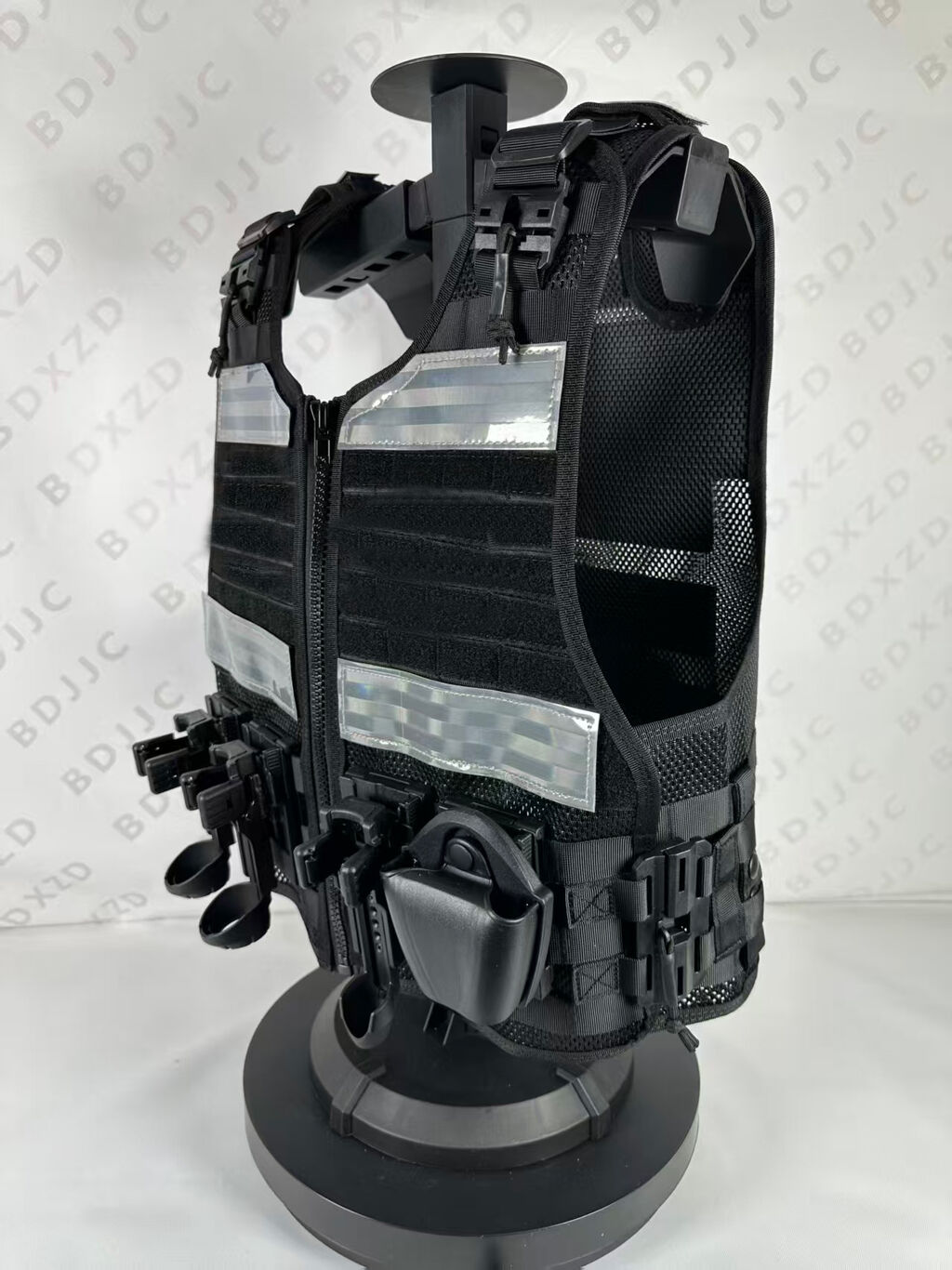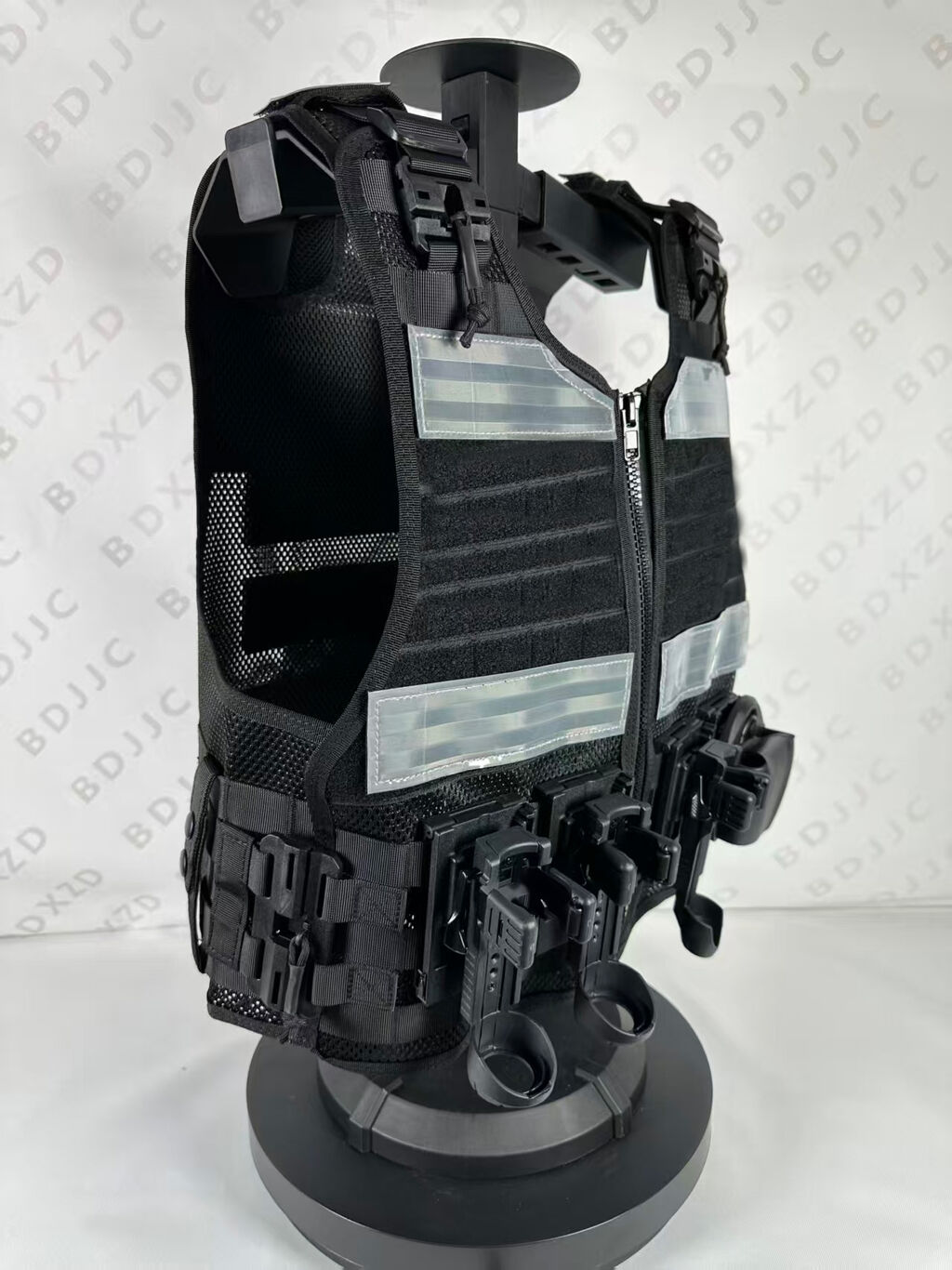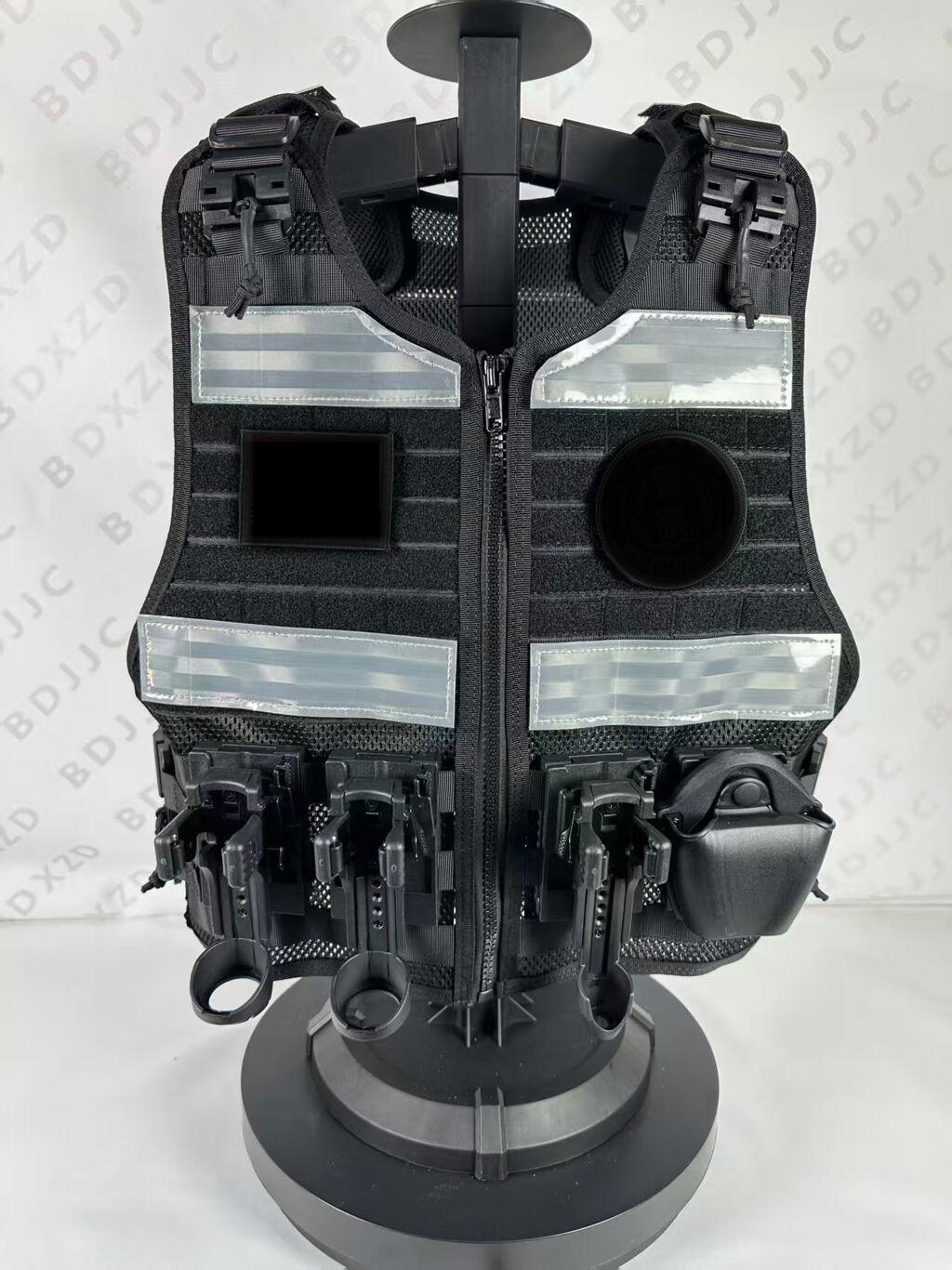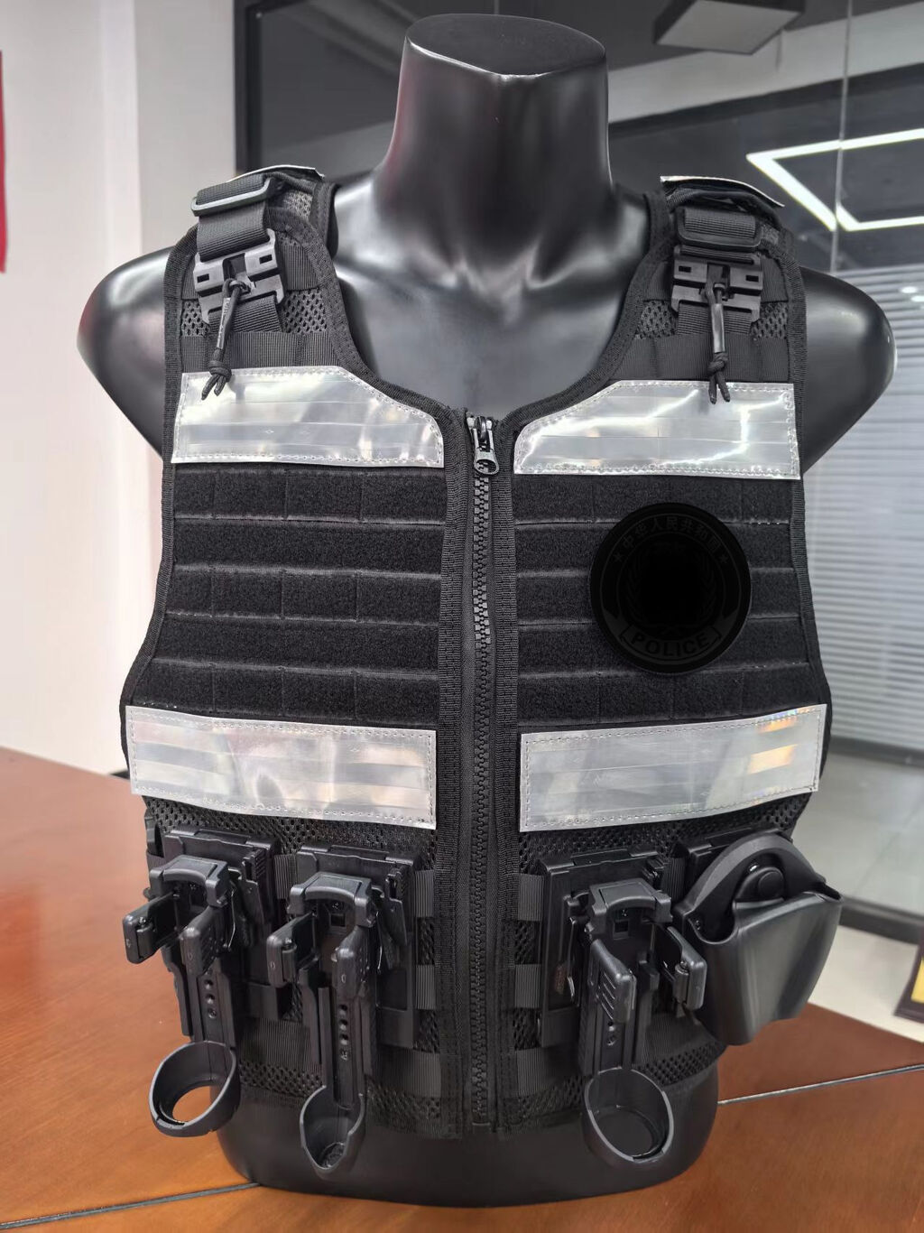 3.正前胸位设有挂载位,可装挂单警手铐,对讲机,催泪,手电,甩棍单警装备袋;也可以自由搭配挂板;背心还增加通风减震垫,可以保护前胸后背,增加执勤舒适度。