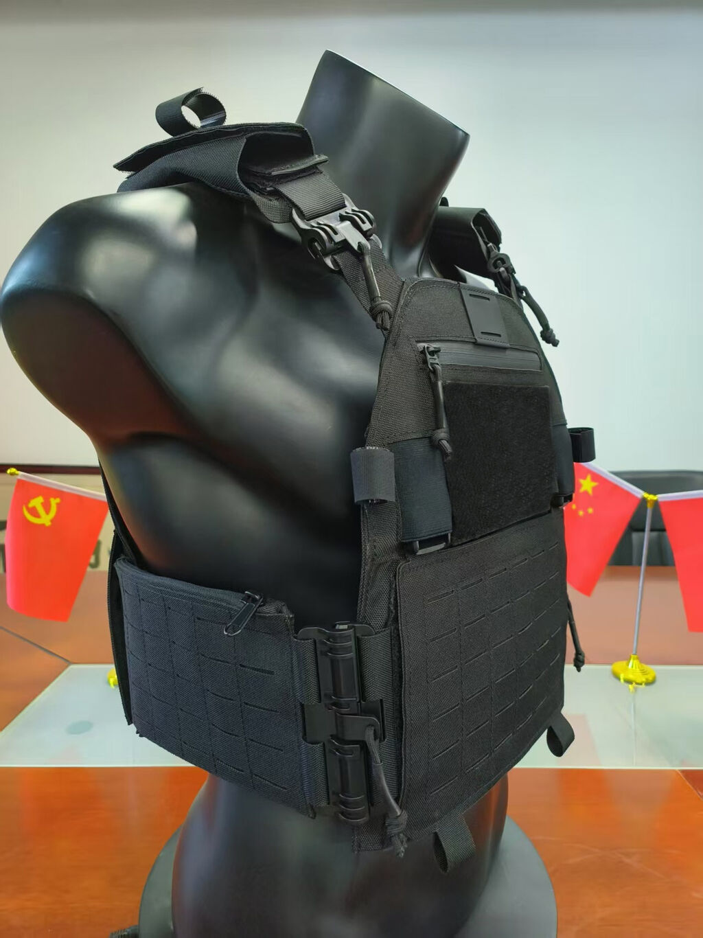 1.激光切割MOLLE结构,轻型拉索快拆作战术背心;