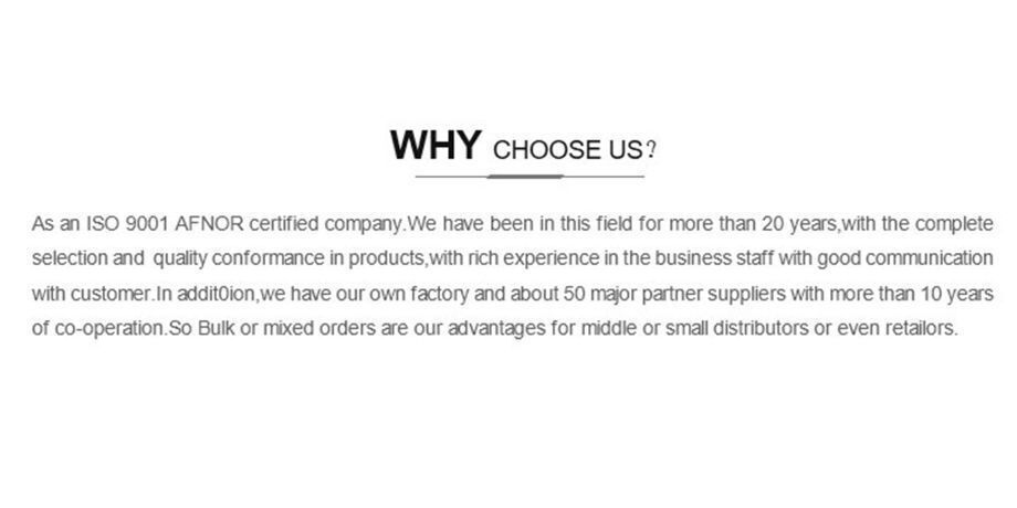 2) Completely product system and strictly quality control system, own ISO Certification.