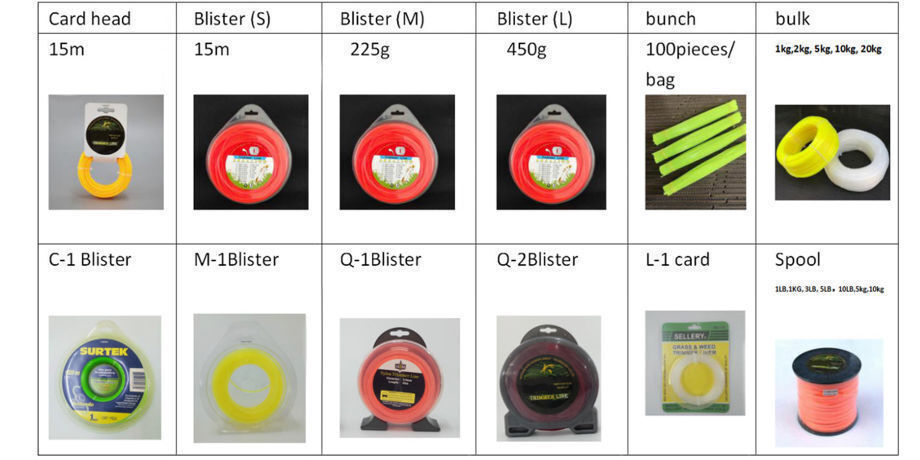 With nylon 6 and 20% Germany BASF nylon as the material, it can produce round and square grass trimmer lines with different thickness ranges, which can be used with various heads. It is safer and more efficient to use than the traditional blade turntable, and the price is more economical.