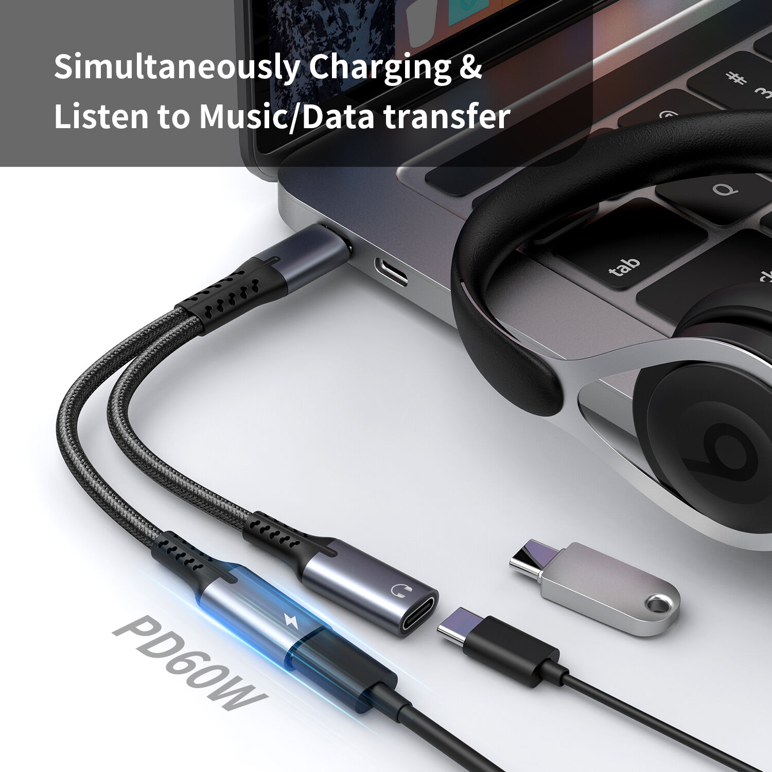 2. Sunlike C-C+C Audio Cable C-C+3.5 Audio Cable supports simultaneously Listenning to music & Charging & Data transferring. Multifunctional one.