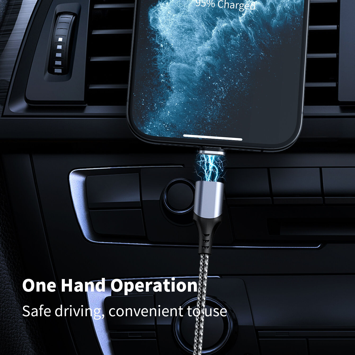 5. Strong magnetic suction, donot worry falling off when charging. Achieve charging with one hand while driving.