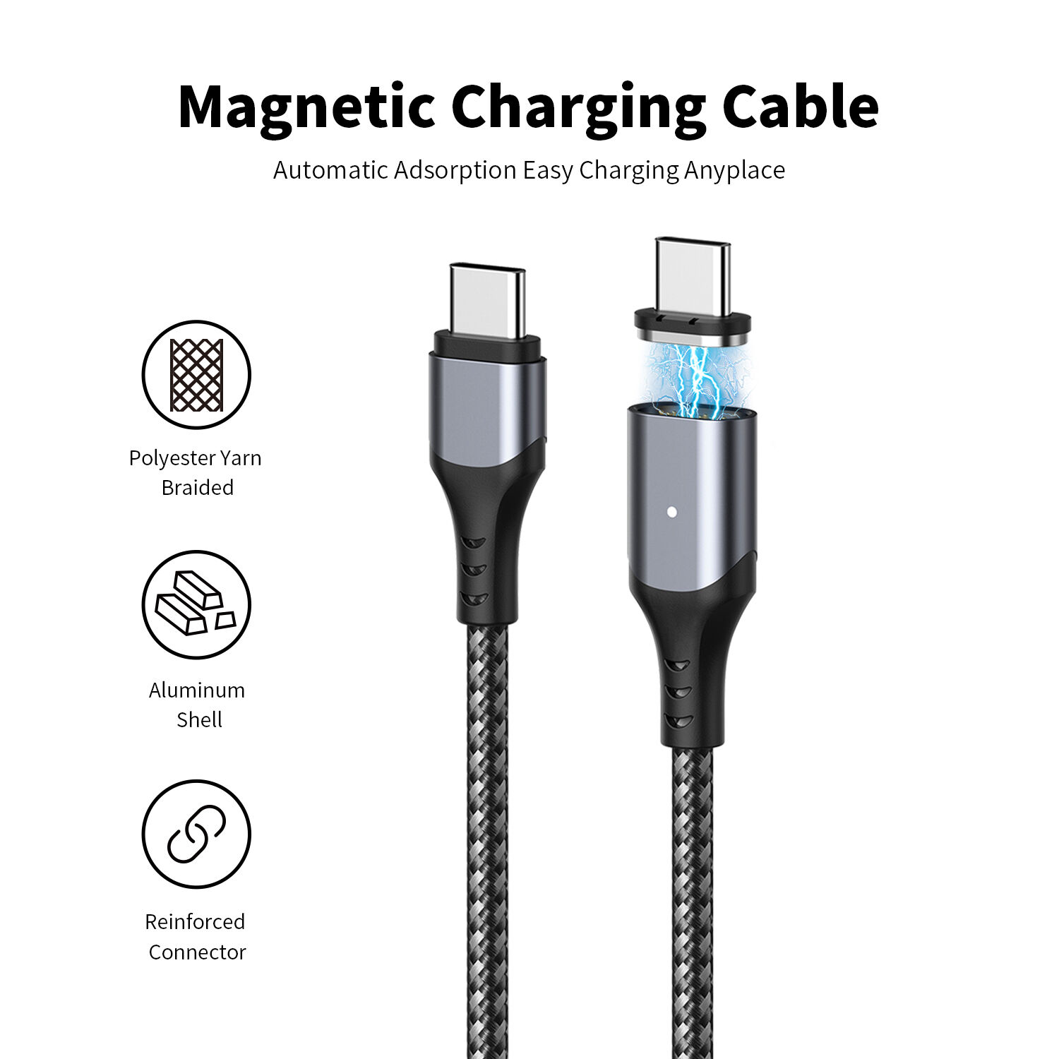 2. It can achieve automatically magnetic connection between connector and cable, to manage fast charging for your phone.