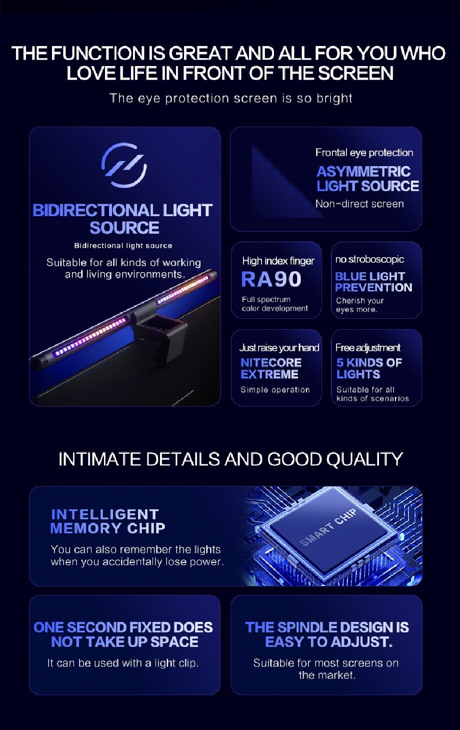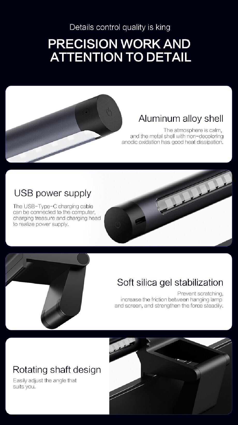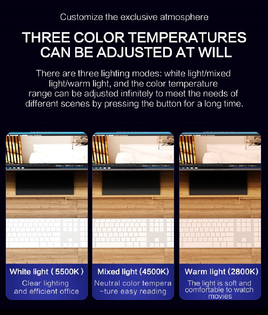 Not like the traditional desk lamp takes up too much space,computer monitor light sits on top of the monitor frees up the desk space. Because of its versatility, this computer screen light is both beautiful and convenient to use.