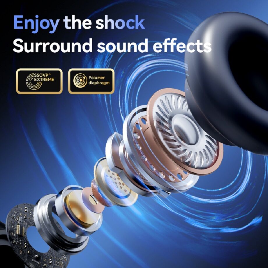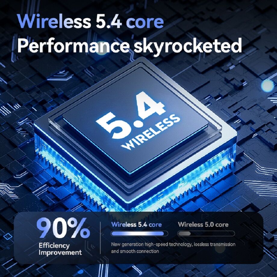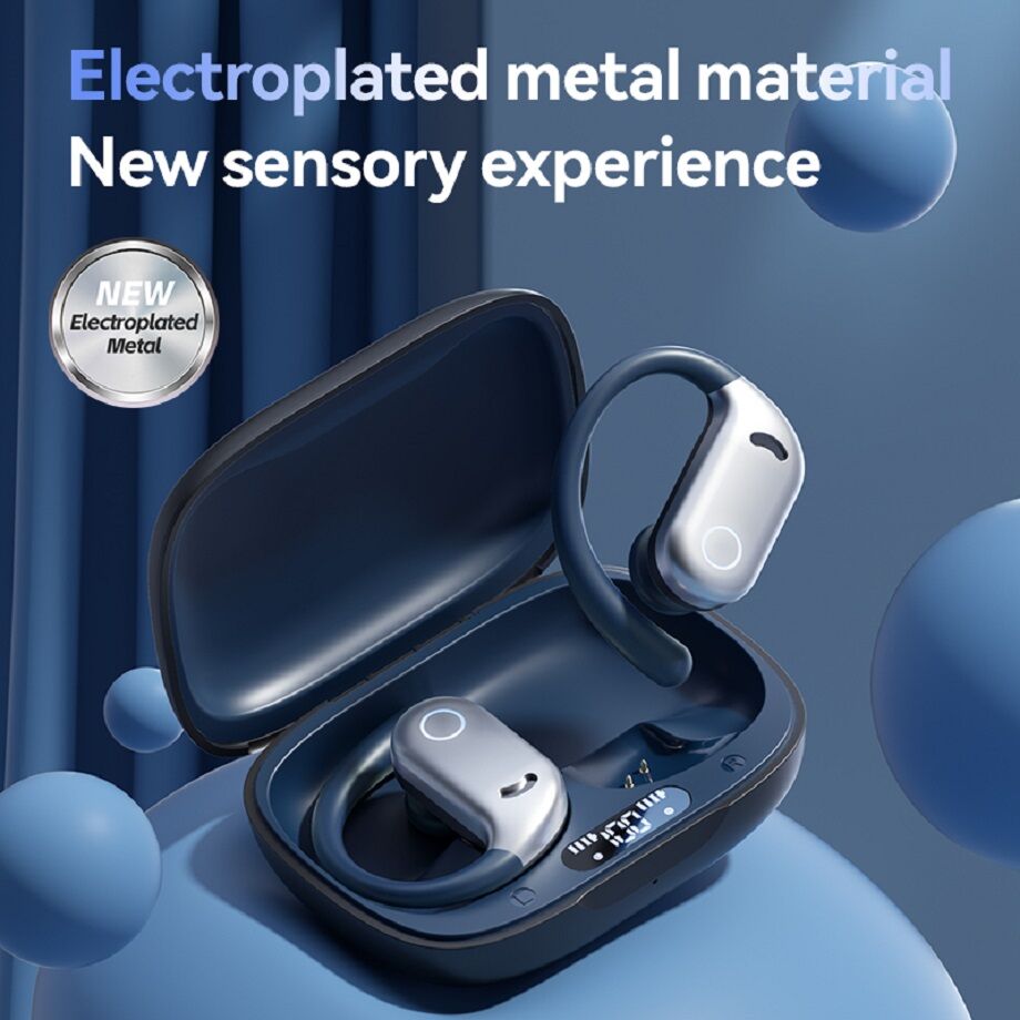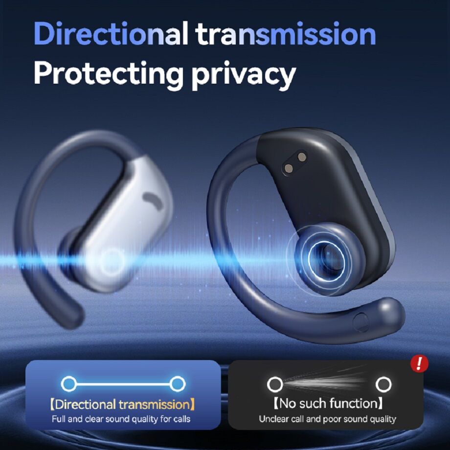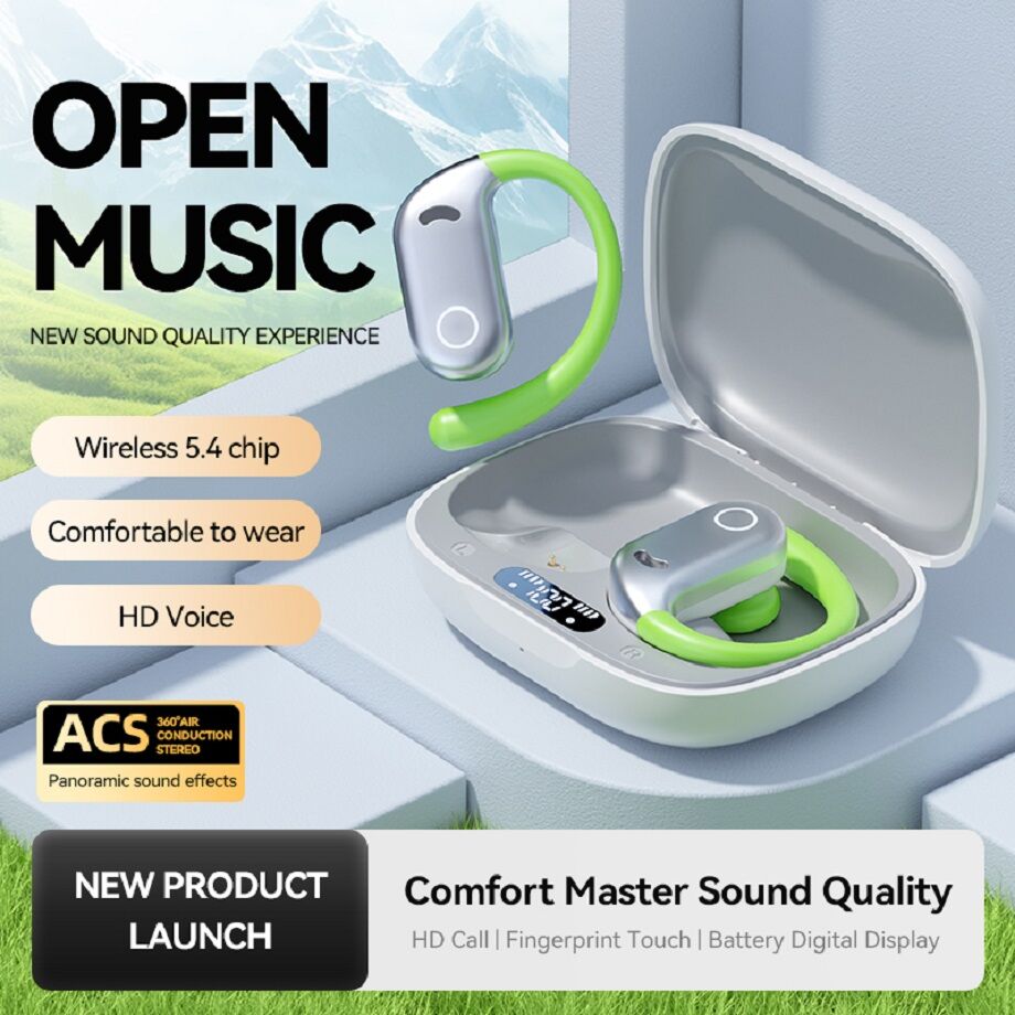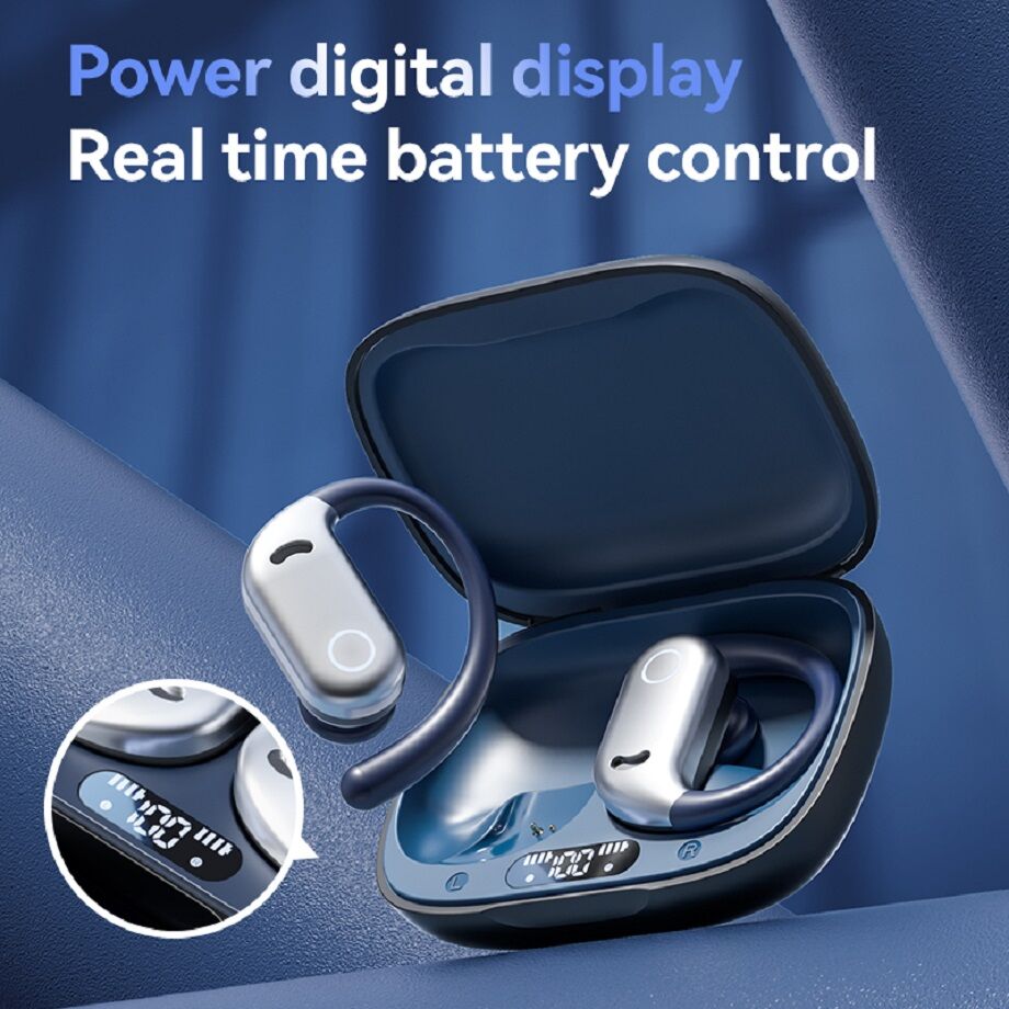 Waterproof ear-hook earphones ,Bluetooth 5.4 (AAC/SBC), 50mAh earphone cell + 300mAh case (protective board), F14.2 speaker, LED display, 64.7g lightweight.