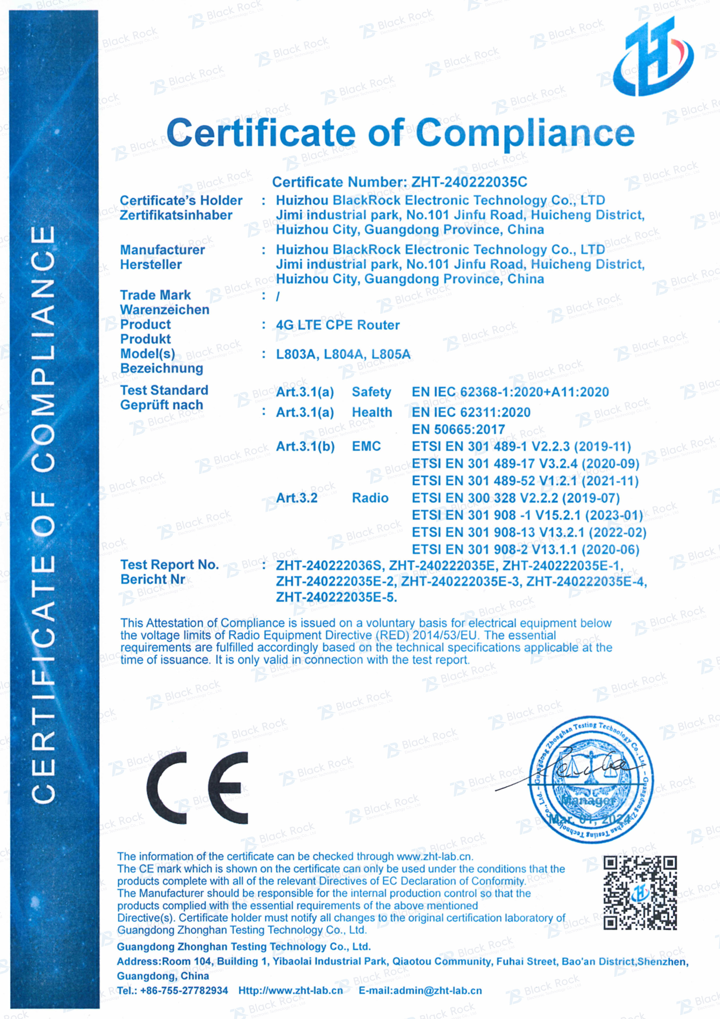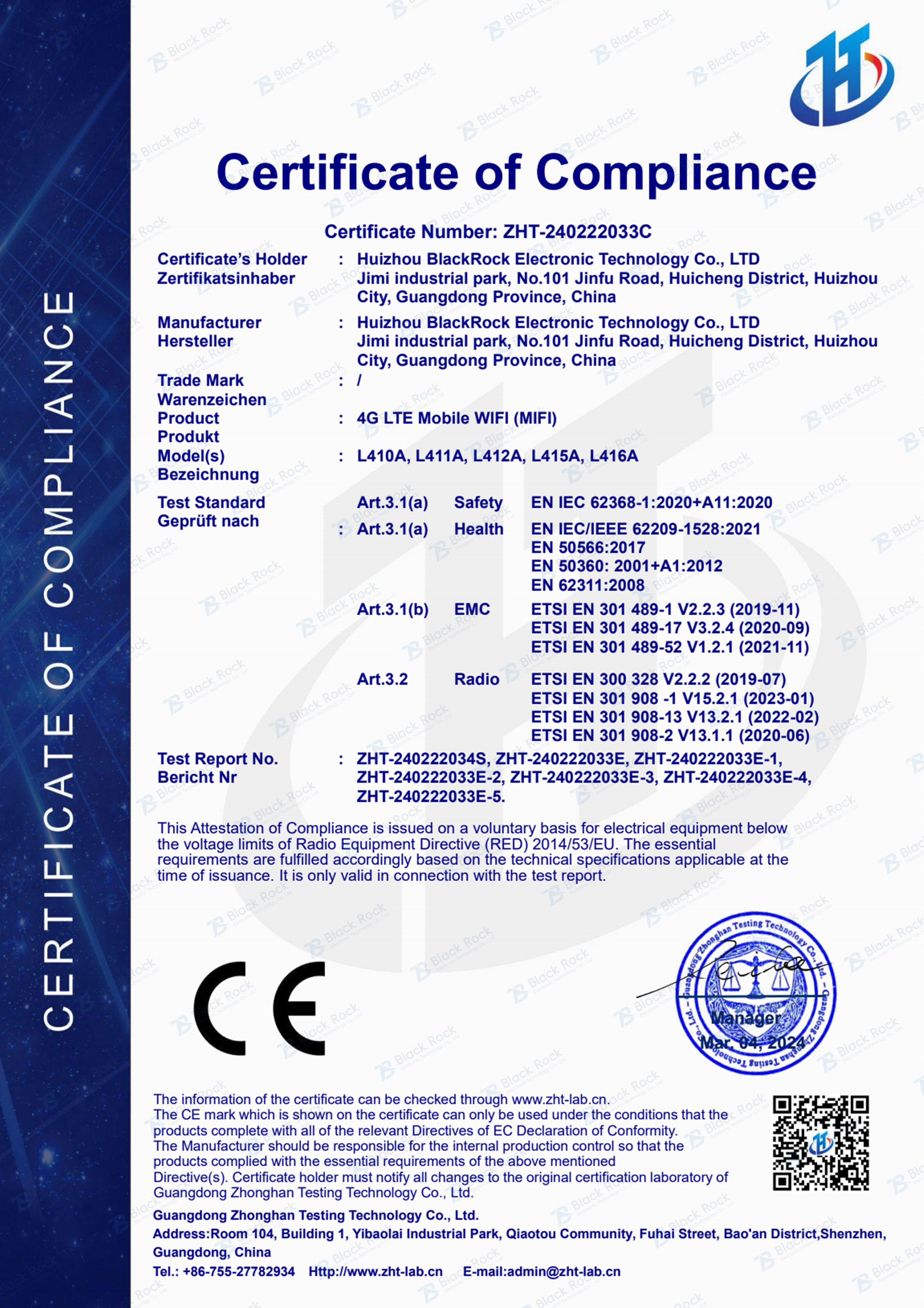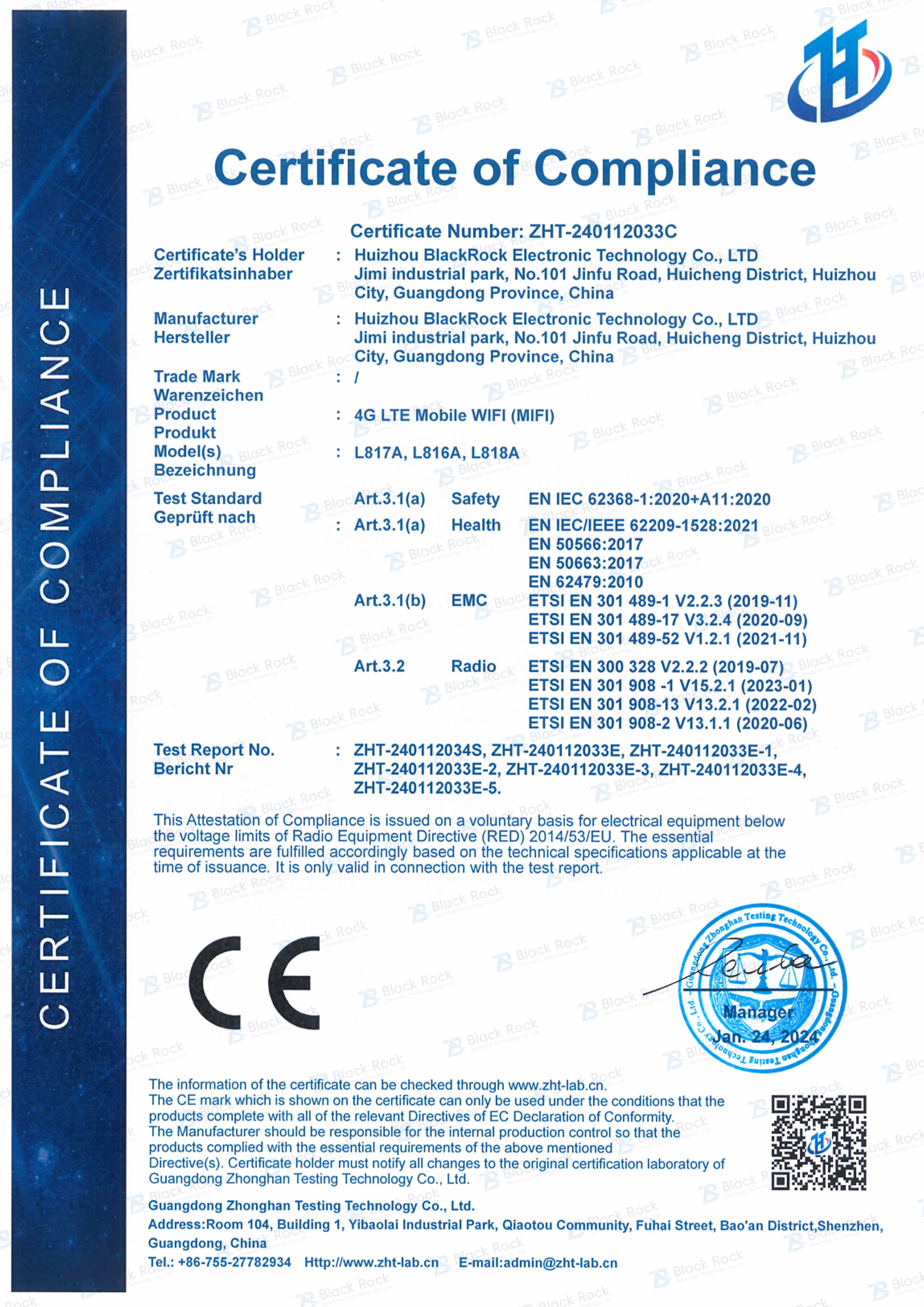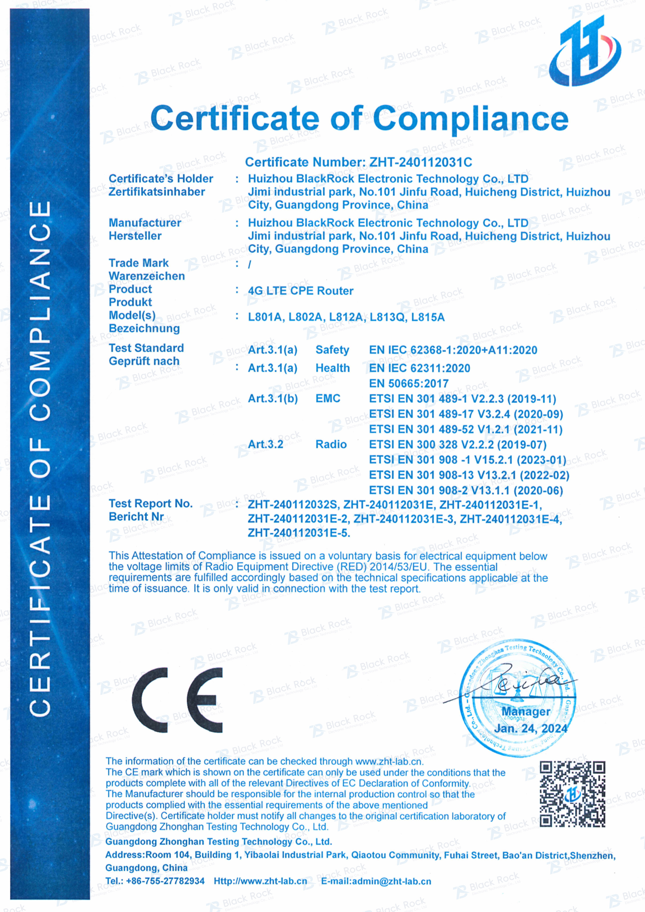 | WIFI Transmission Rate | LTE CAT4 FDD-LTE 300Mbps DL /230Mbps UL |
