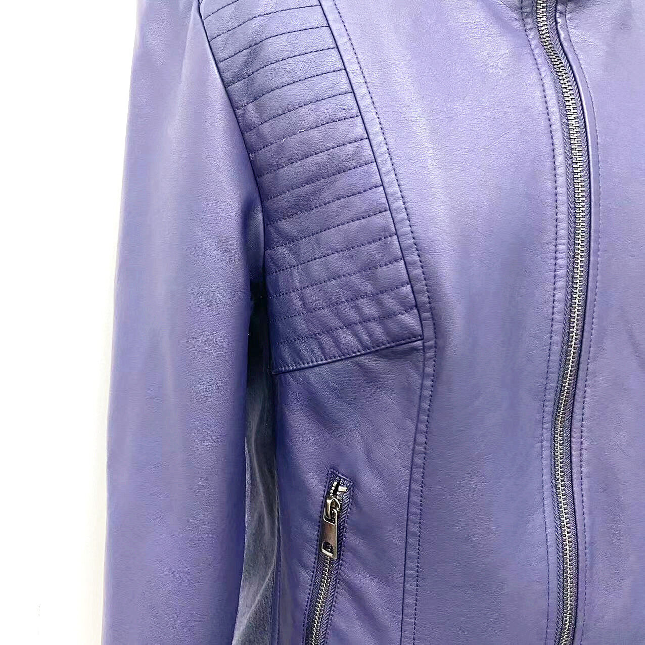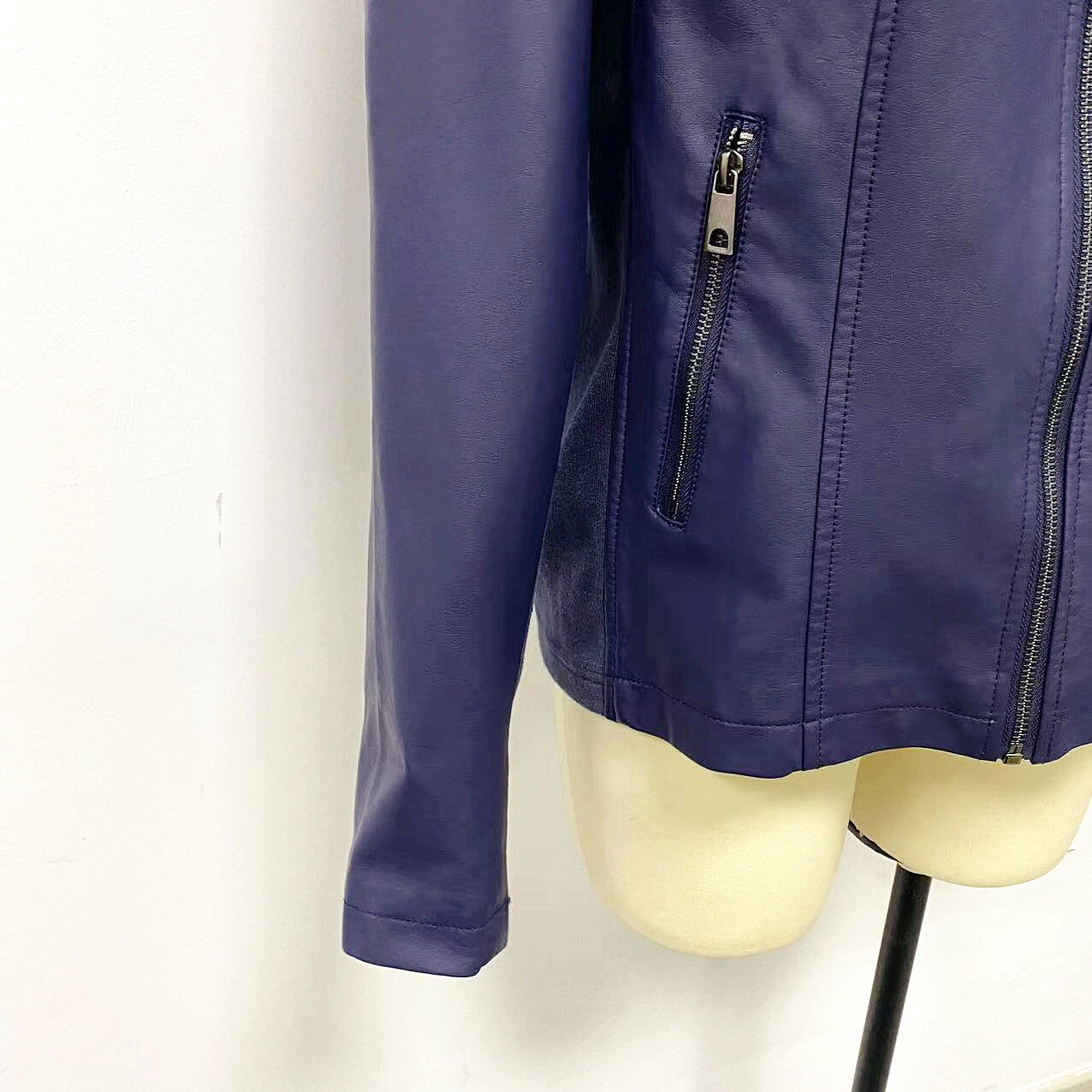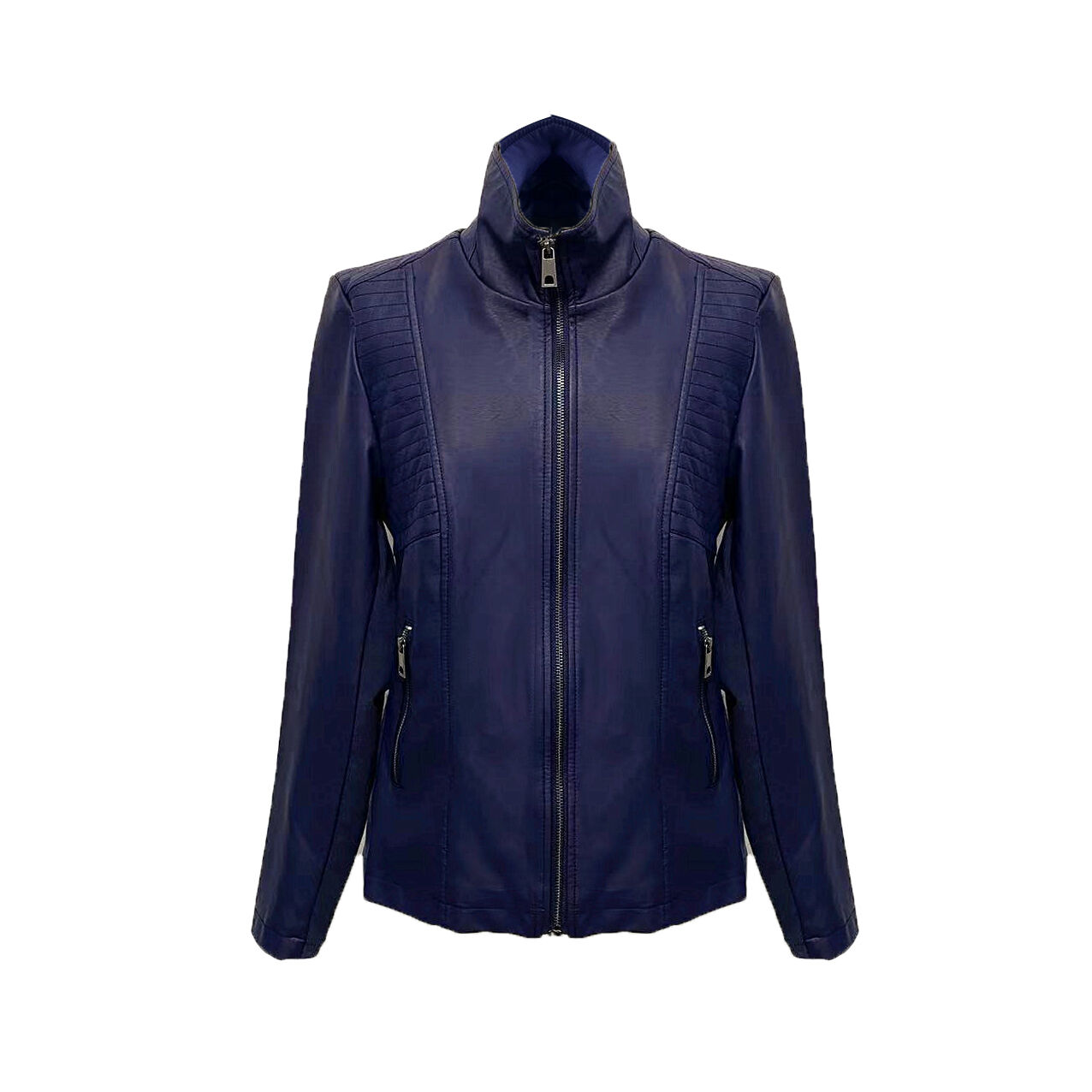 OEM Women's Fashion Blue Stand Collar Faux Leather Jacket for daily