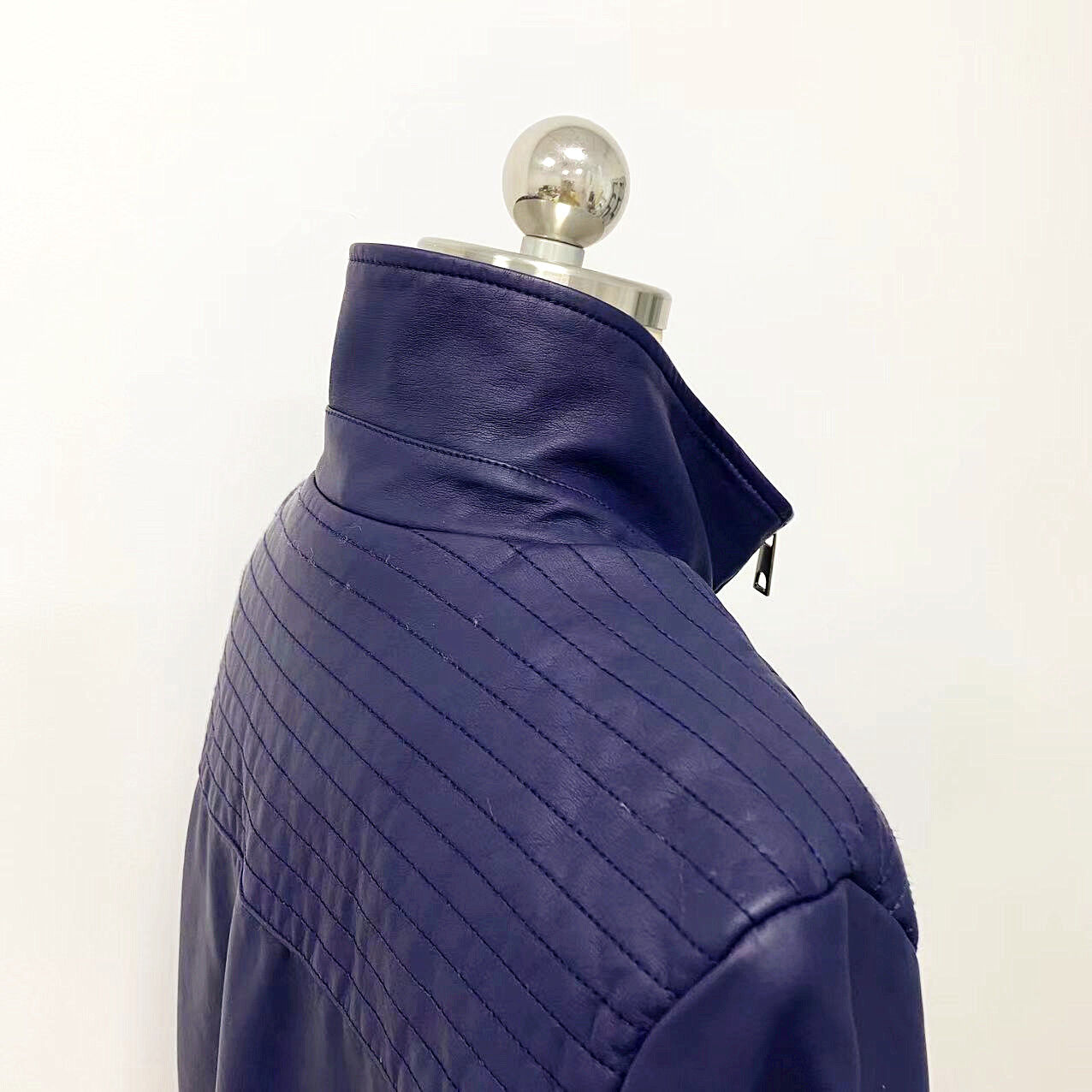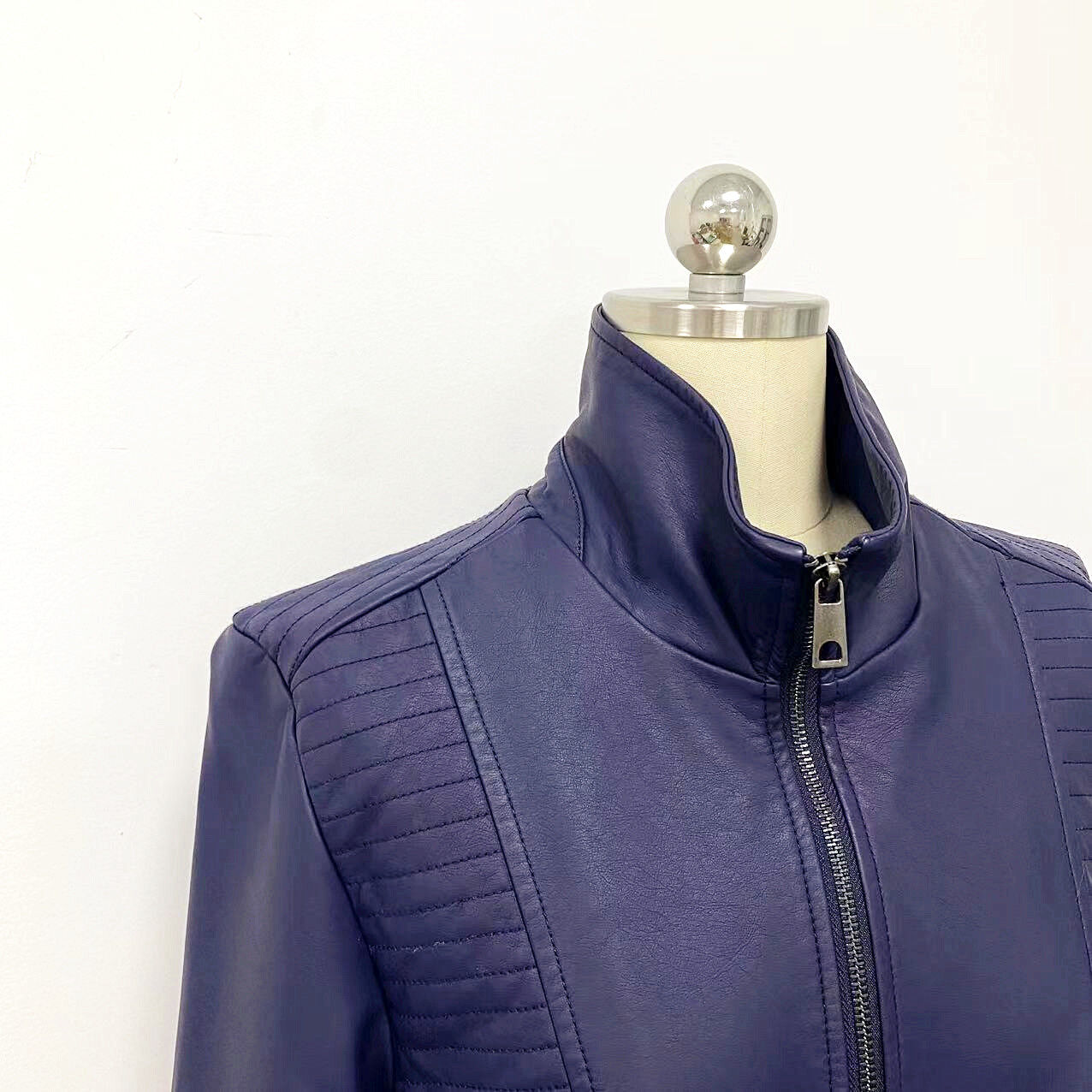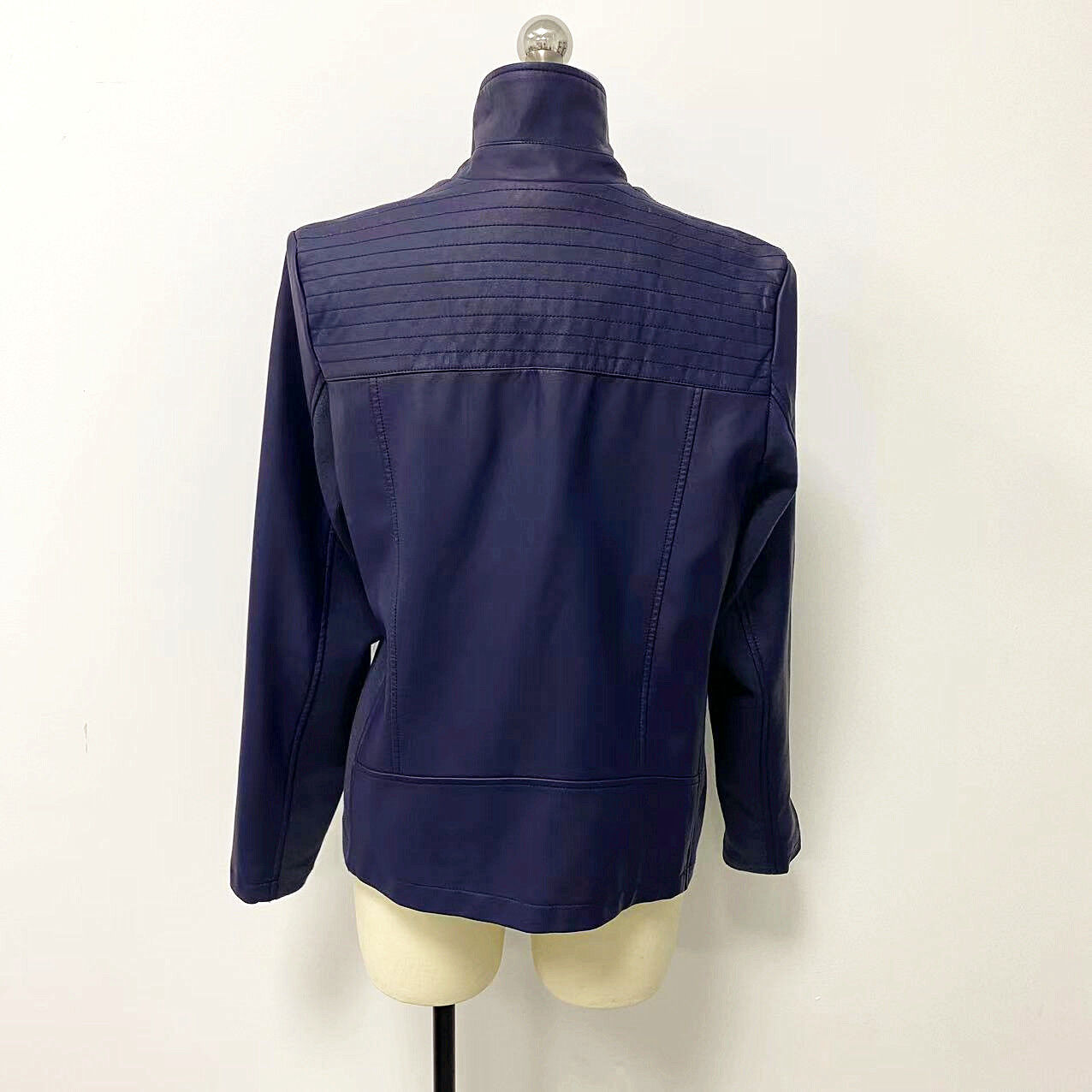 OEM Women's Fashion Blue Stand Collar Faux Leather Jacket for daily