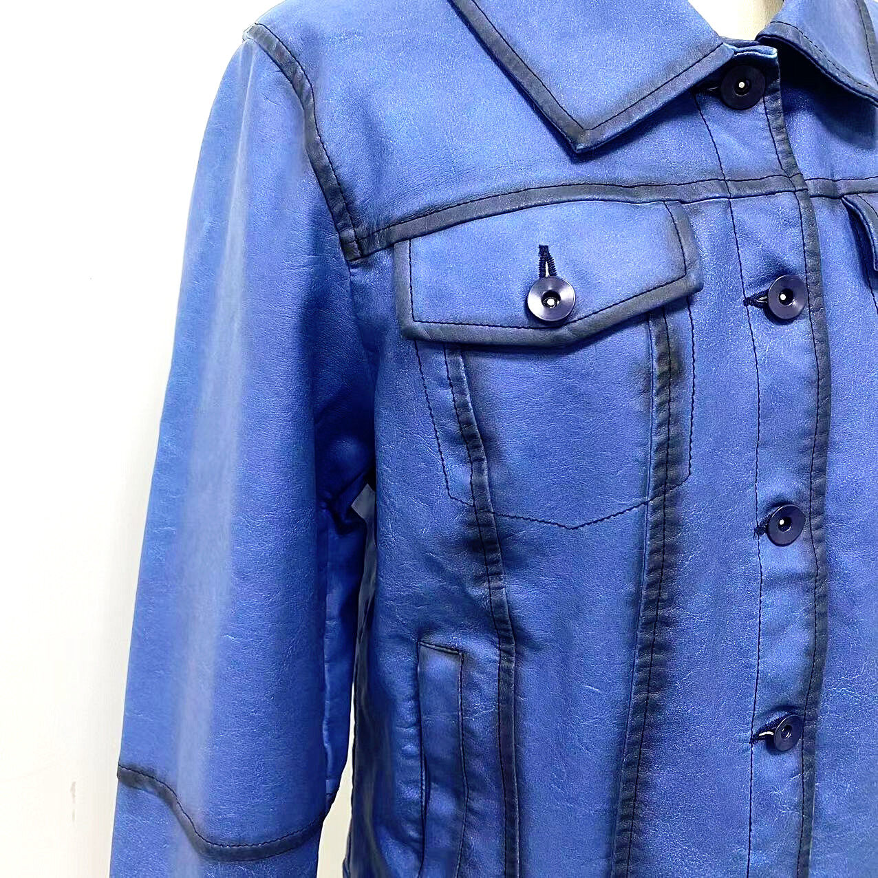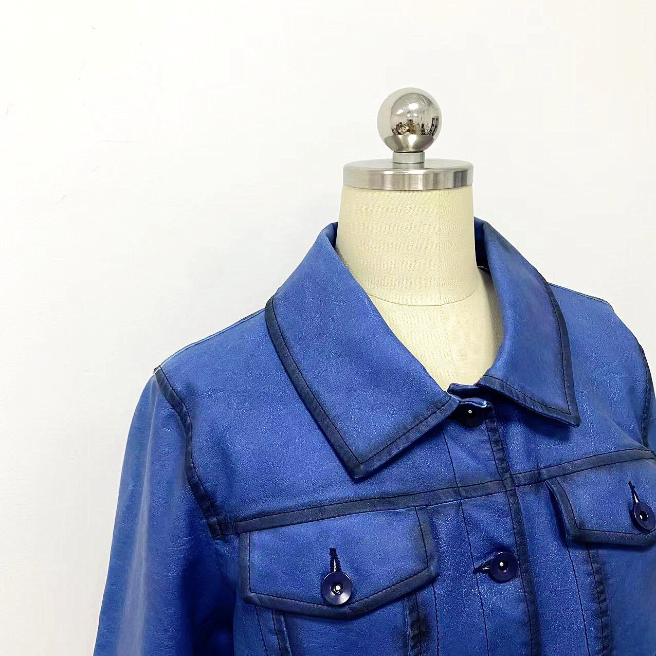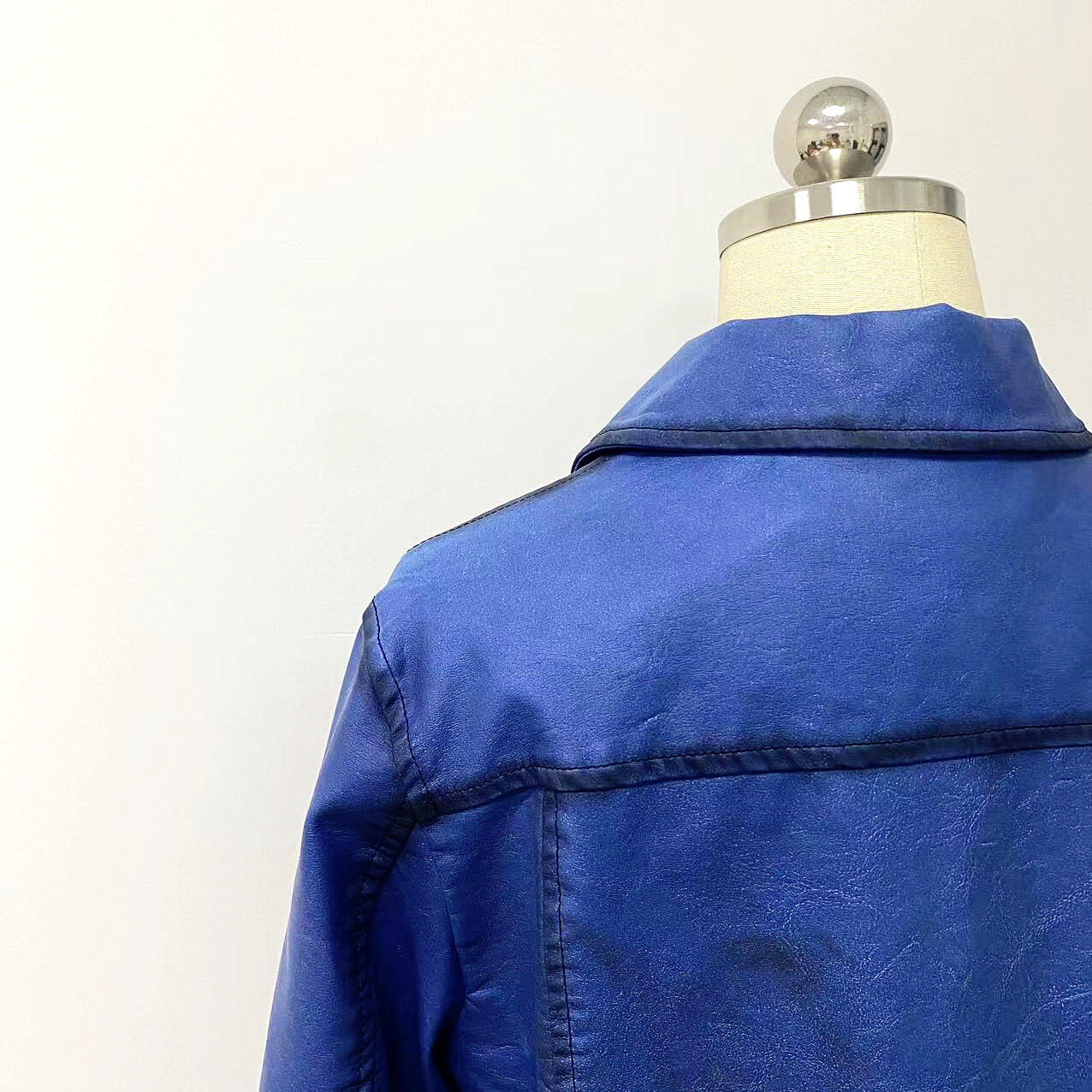 OEM Women's Fashion Blue turn-down collar spray-painting Faux Leather Jacket for daily
