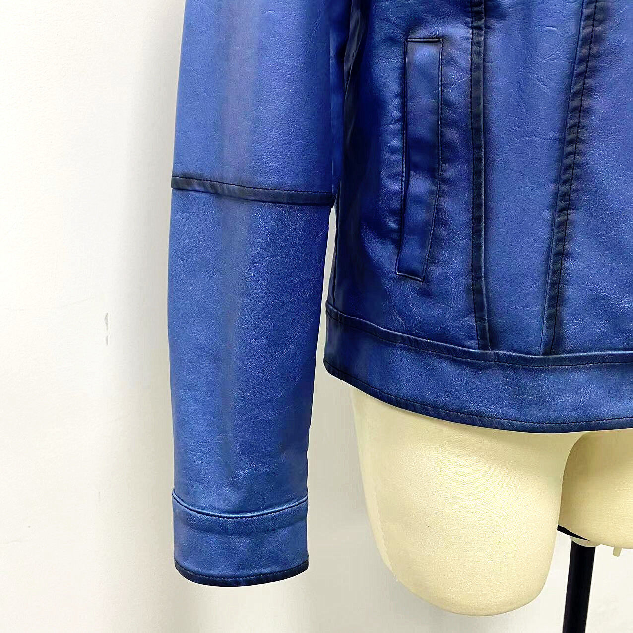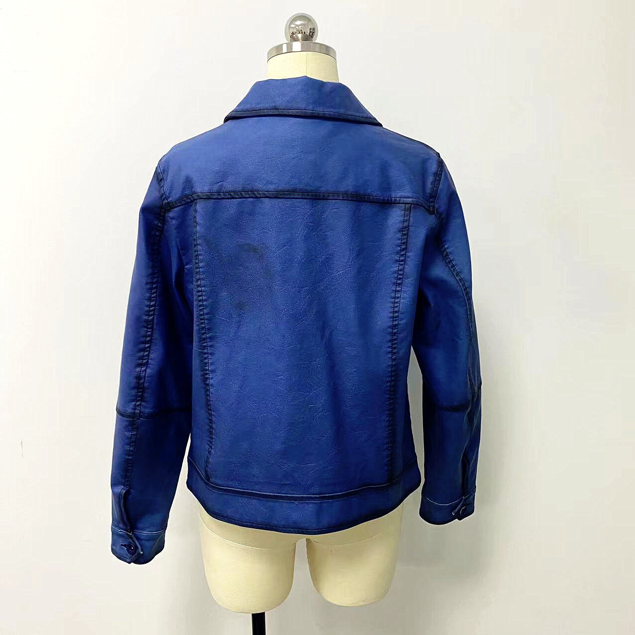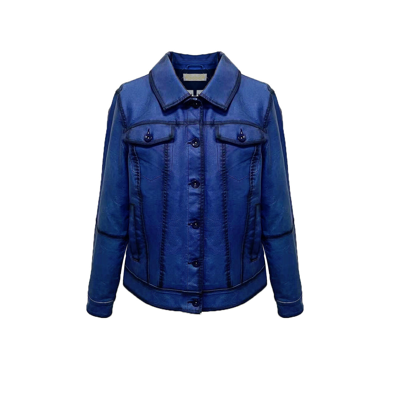 OEM Women's Fashion Blue turn-down collar spray-painting Faux Leather Jacket for daily