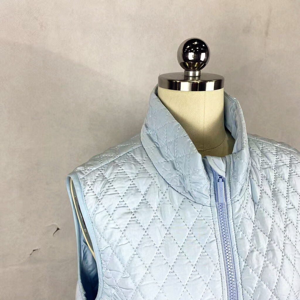 OEM Women's Fashion Casual Blue Overlapping stitch Padded Winter Vest Jacket for Daily