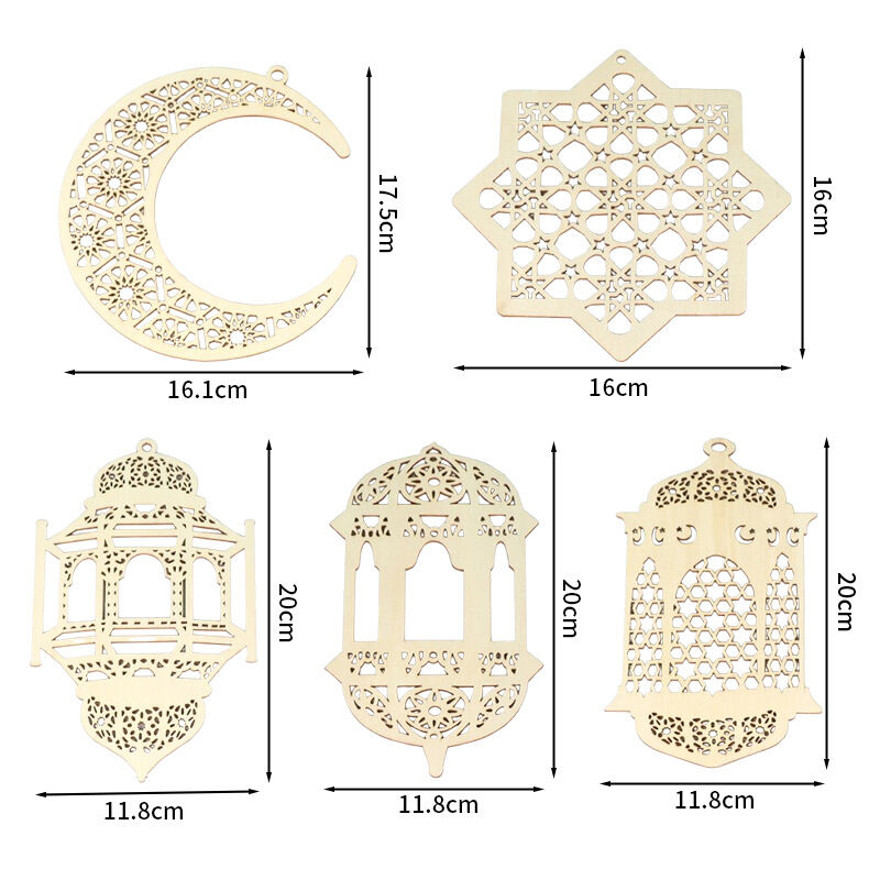 Ramadan Decorations Wooden Hanging Ornaments Eid Mubarak Home Decor Laser Cut Moon Star Lantern Islamic Festival Mosque