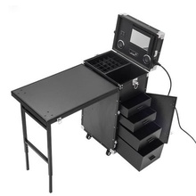 Made of aluminum, this KC-493S-black trolley case from Koncai functions as a manicure table, and travel beauty case and jewelry organizer all in one. It comes with four drawers, a removable nail polish container, a mirror and speakers. Dimensions are 830x420x290mm. The MOQ is one box. Lead time is 25 to 45 days and the price ranges from $120 to $140.