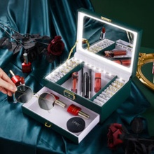 This LED mirror jewelry box from Shenzhen WEM, the WEM-C01, is made of PU leather, comes with a metal lock and has two layers. Dimensions are 23x17x9.5cm. The order quantity of 10 pieces has a lead time of seven to 60 days. Price ranges from $21.50 to $24.
