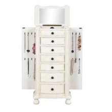 The FR-JA-1024-2 from YiLong is a standing jewelry box with six drawers, two doors and a mirror. It is made of solid wood and MDF, measures 47.7x30x102cm and comes in antique ivory or custom finish. For an MOQ of 500 pieces, the product is quoted at $1 per piece. Lead time is 30 to 45 days.
