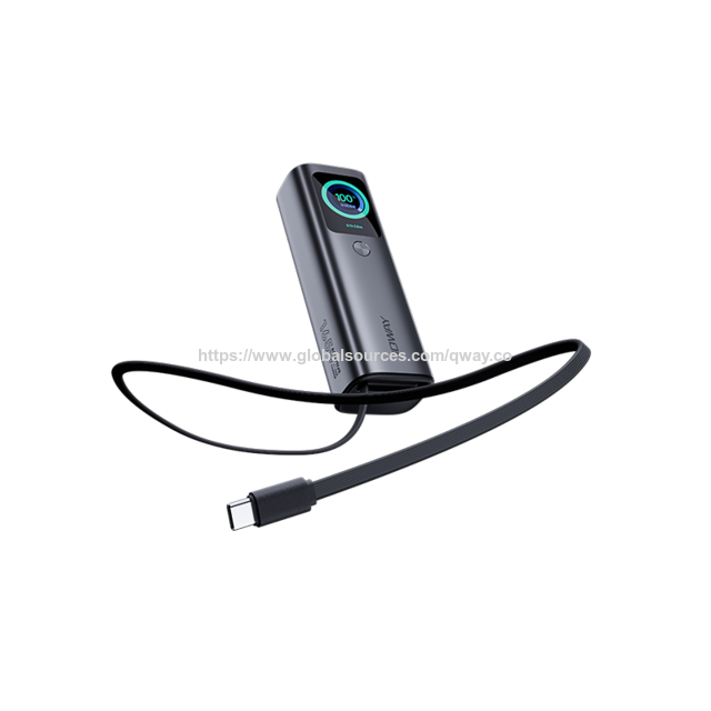 Shenzhen Joway Power Supply Co. Ltd’s model JP 365 is a fast-charging power bank with 20,000mAh capacity and 165W total power output for handling two devices simultaneously. It has a USB-C port, a 60cm retractable cable for easy carrying and storage, and a TFT screen displaying charging status.