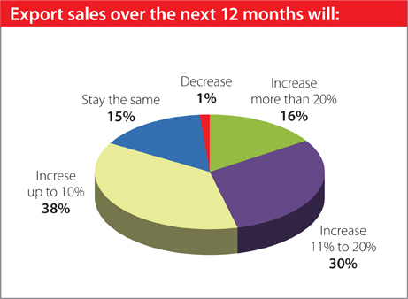 A large majority of respondents expressed confidence in registering higher foreign revenue over the next 12 months. Nearly one-half expect growth to surge by at least 11 percent. Over one-third forecast modest gains of within 10 percent. The optimistic outlook is driven by the continued recovery of the US and EU economies as well as burgeoning demand from alternative destinations such as the Middle East, South America and Southeast Asia.