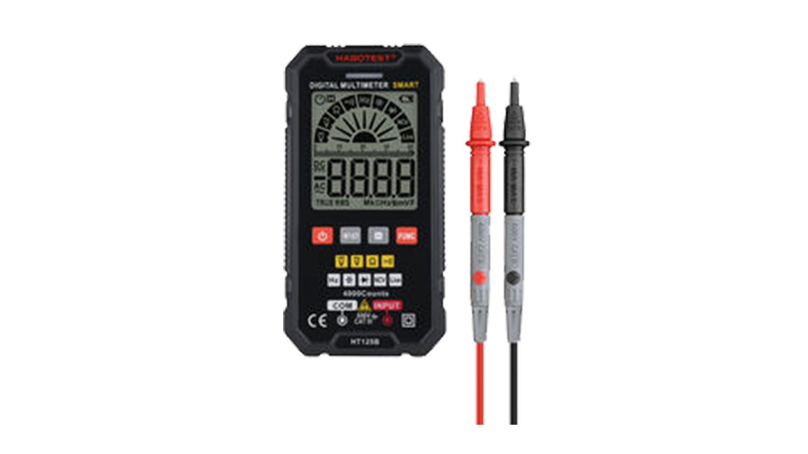 Dongguan Xintaicheng’s HT125B is a smart digital multimeter that displays up to 4000 counts. Its measuring range for voltage is 0 to 600VAC/DC, for resistance 0 to 40Mohms and for capacitance 0 to 4mF. This auto-range device has an NCV and live test features, both emitting audio and light alarm, and supports TRMS, and 0 to 2V diode and continuity testing. It runs on two 1.5V AAA batteries. The size is 127x66x19mm and the weight is about 107g.