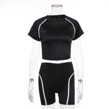 Available is extra-small to large or custom sizes, Quanzhou Lonice’s LNR7673 sweatsuit set for women consists of a crop top shirt and shorts with reflective strips. The order quantity of 800 pieces is for delivery in 50 to 70 days. Price ranges from $4.50 to $5.