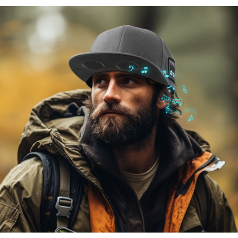 From Market Union Co. Ltd, model WM396H is a Bluetooth-enabled hat featuring dual speakers for music playback and fabric with cooling technology. The fabric weave absorbs water, and the hollow-core construction actively spreads it throughout the hat, providing cooling effects that can lower body temperature.