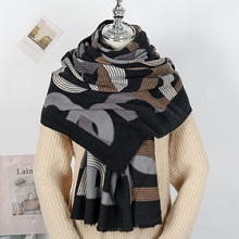This cashmere scarf for women, the JY005, is made from a combination of acrylic and polyester fibers. It is available in versions with various patterns. Size is 180x82cm.