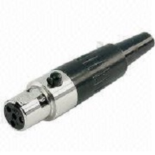 Description: This mini female XLR connector, the M58842B, has three gold-plated pins. It is RoHS-compliant. Also available are variants with four, five and six pins. Price and MOQ are given on direct inquiry.