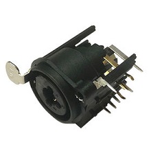Description: The DIN-315 is a three-pin male XLR connector for power amplifiers and audio mixers. It has ≤0.03ohm contact and ≥100Mohm insulation resistance, 1,500VAC/min withstand voltage and 50VDC, 0.5A rated load. Its insertion/extraction force is 1 to 5kgf and terminal strength ≥3kgf. This horizontal PCB-mount unit has -25 to 70 C temperature range and lasts 1,500 cycles. Price and MOQ are provided on direct inquiry.