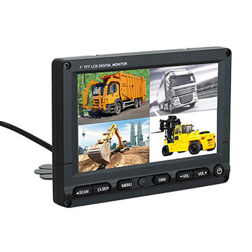 The MRM704Q rear-view monitor from Mirae Tech Co. Ltd provides a four-screen split view on a 7-inch anti-glare screen. It has menus in multiple languages and provides both mirror and normal display views as well as parking assistance. It has IP65-rated water resistance and 30g vibration-resistance.