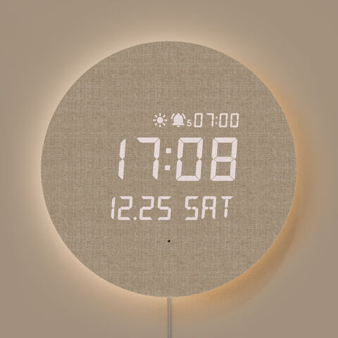 The Full Moon LED Wood Wall Clock from Mooas Inc. has clock, night light and night light and clock modes, with the night light appearing like a full moon in colors of yellow, white and blue. It has automatic brightness adjustment.