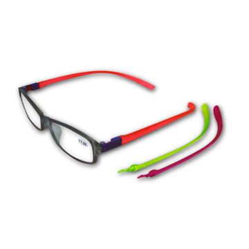 The stems of Koollook's model KRJ00917 reading glasses are changeable, allowing customers to choose different colored temples to match their garments.