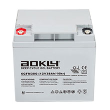 This deep-cycle battery from Guangdong Aokly Group Co. Ltd, the 6GFM 38G, is based on AGM technology and has a float life of 10 years at 25 C. It has 12V rated voltage and 38Ah rated capacity. Housing material is ABS. The minimum order requirement is 100 cartons. Lead time is 10 days.