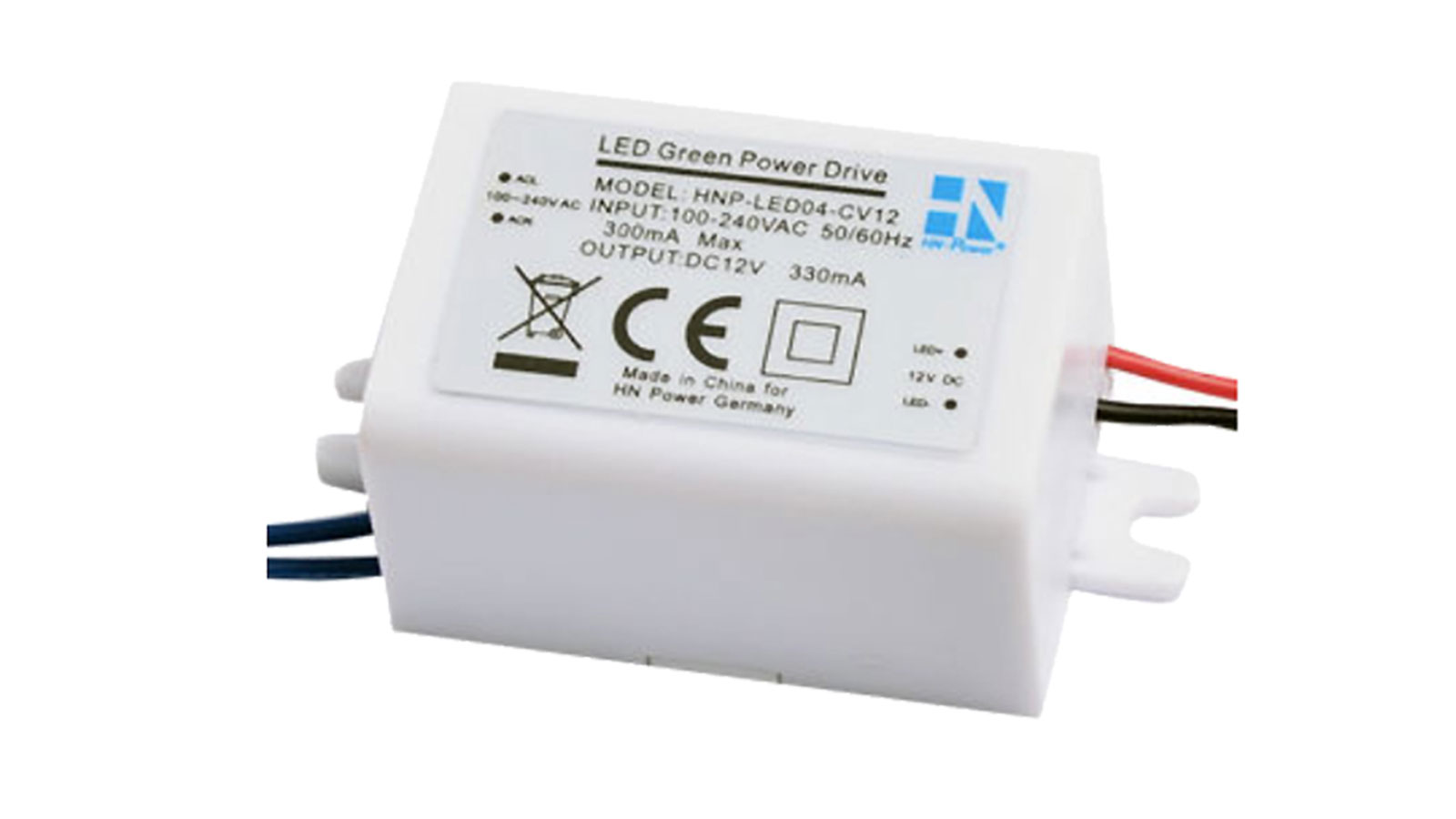 Dongguan Speedtek’s plug-in LED driver, the SNT-12V3.6W, has 220 to 240VAC, 50/60Hz, maximum 0.2A input, 12VDC, 100 to 300mA output, 3.6W maximum load and -20 to 44 C operating temperature. It measures 64.5x42x53mm.