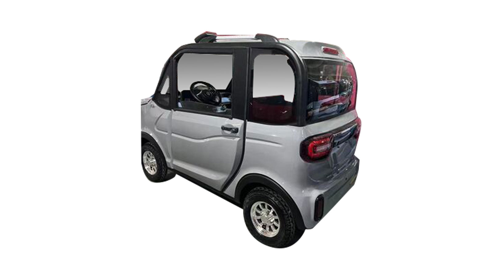 Weihai PTC’s electric car, the Lojo-D300, has four doors and seating capacity for two or four people and a maximum speed of 108kph. It has a rear drive system, air-cooled motor with 29kW peak power, electronic power steering, hydraulic disc brake, power windows, 165/70 R13 tires with aluminum wheels and 12.2kWh lithium battery. Other features include 7in car monitor, rear camera, EBD and TPMS. Vehicle size is 3,380x1,500x1,610mm.