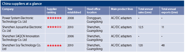 In mainstream supply in China are desktop and wall-mount AC/DC adapters for mobile and wearable devices and LED lighting. Units for smartphones, tablets and laptops currently make up the bulk of shipments from Chinese companies.