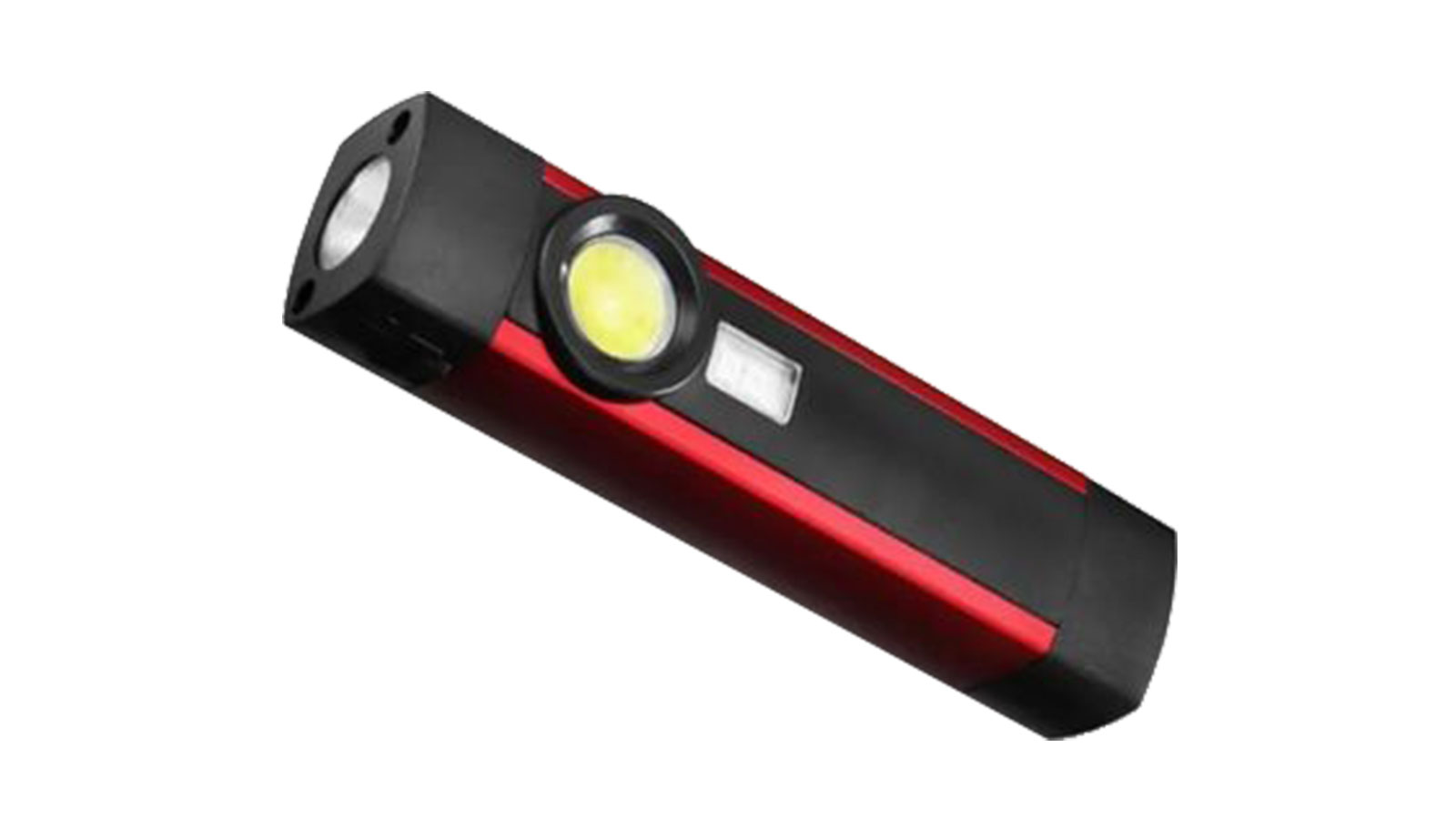 Ningbo Haishu Forcar markets the HL70421-DY, a handheld cordless work lamp with a COB, a 1W and two UV LEDs. This device has four flashing modes and sources power from a rechargeable 3.7V, 2,000mAh battery. It has two magnets, one at the bottom and the other at the side, and includes a Micro-USB cable. Product size is 110x26x20mm and net weight is 106g.